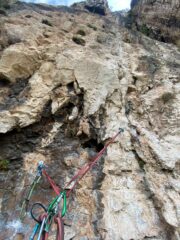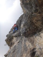 Via sportiva ben spittata, magnifici i 3 tiri centrali roccia veramente bella e scalata godibile.