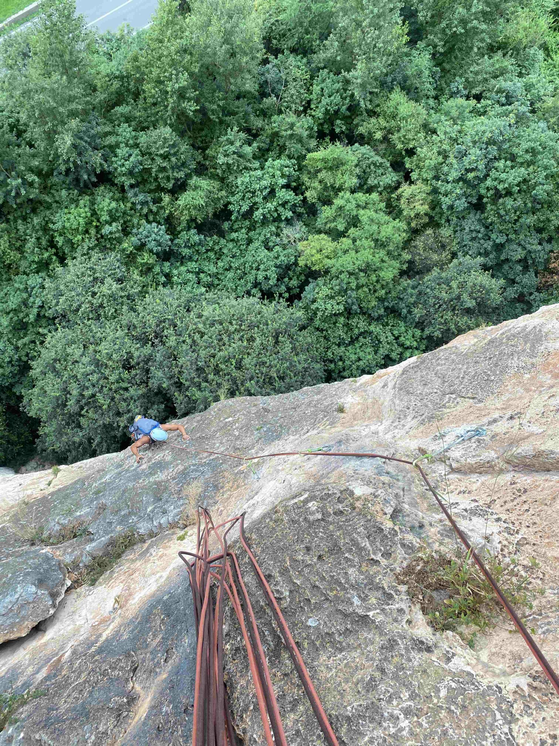 Via capolavoro. Roccia fotonica. 1 tiro 6a con qualche passaggio fisico (bello intenso) 2 tiro 38 metri di continuità su sequenza di buchi e gocce su…