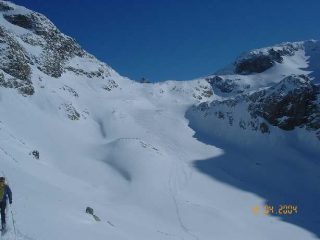 Inforcato gli sci dopo circa 40minuti, sotto By, crosta rigelo morbida ma portante, vento gelido, fermati a quota 2700, sopra la punta della Balma per…