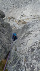 Su queste difficoltà sicuramente una delle vie più belle che io abbia salito. La cengia che divide a metà la via rovina un po' la…