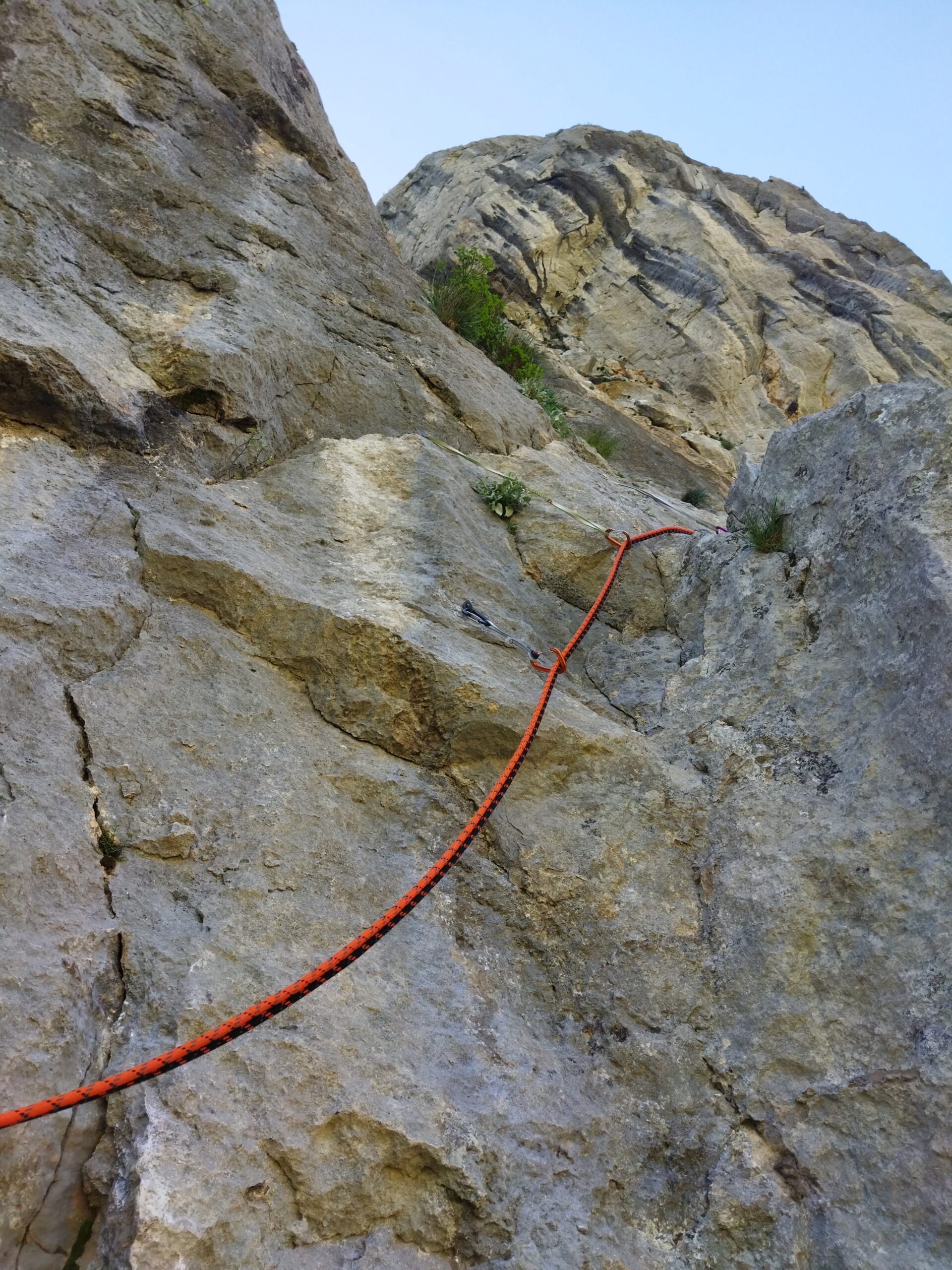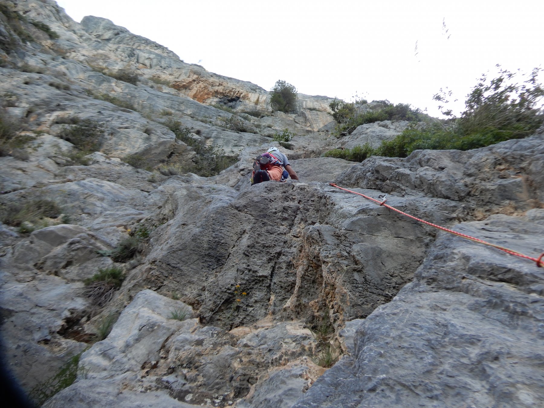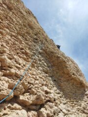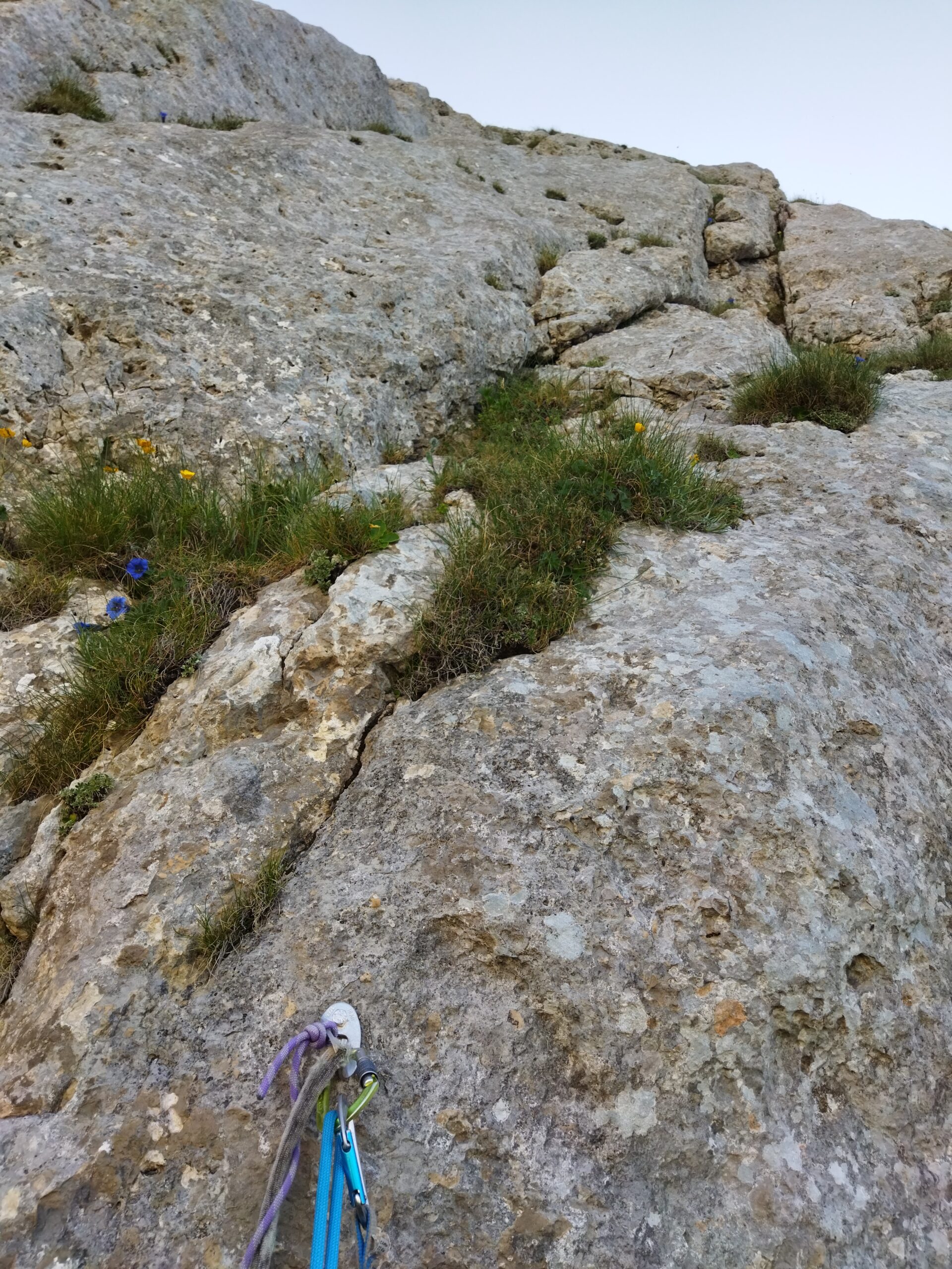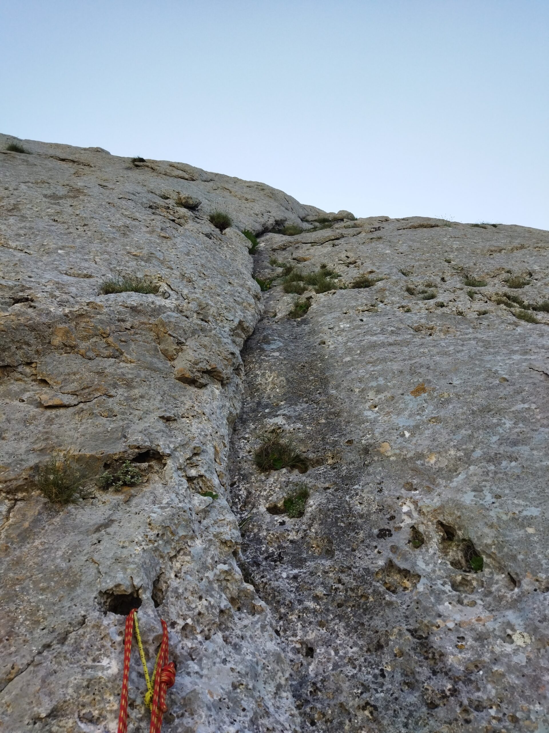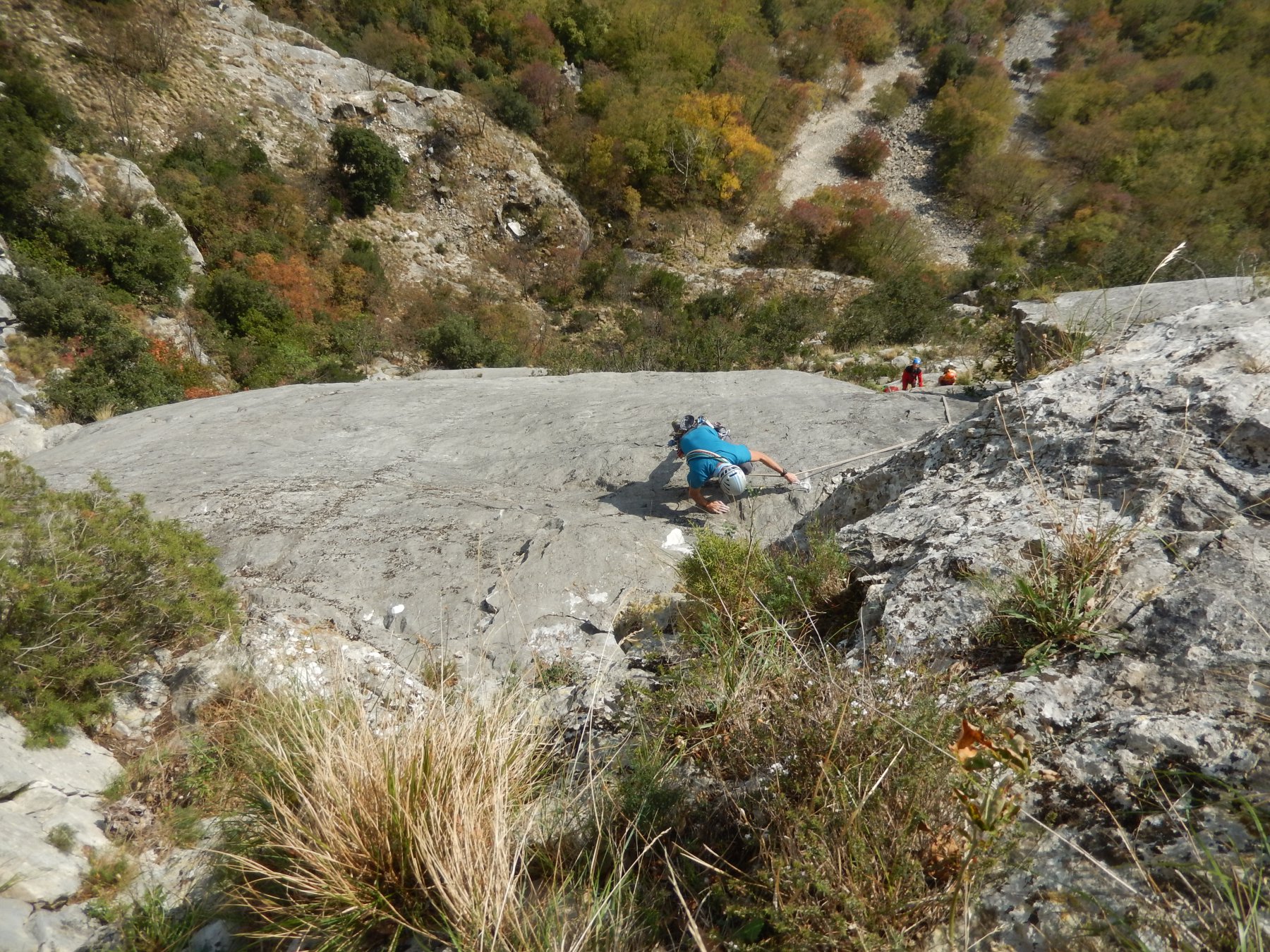 | davec77 | Il paretone | davec77 | Il primo tiro | davec77 | Il traversino ben protetto che parte dalla sommità del secondo camino-lama | davec77 | Il mare è poco lontano | davec77 | Terzultimo tiro, dato 4... mah | davec77 | Dalla vetta