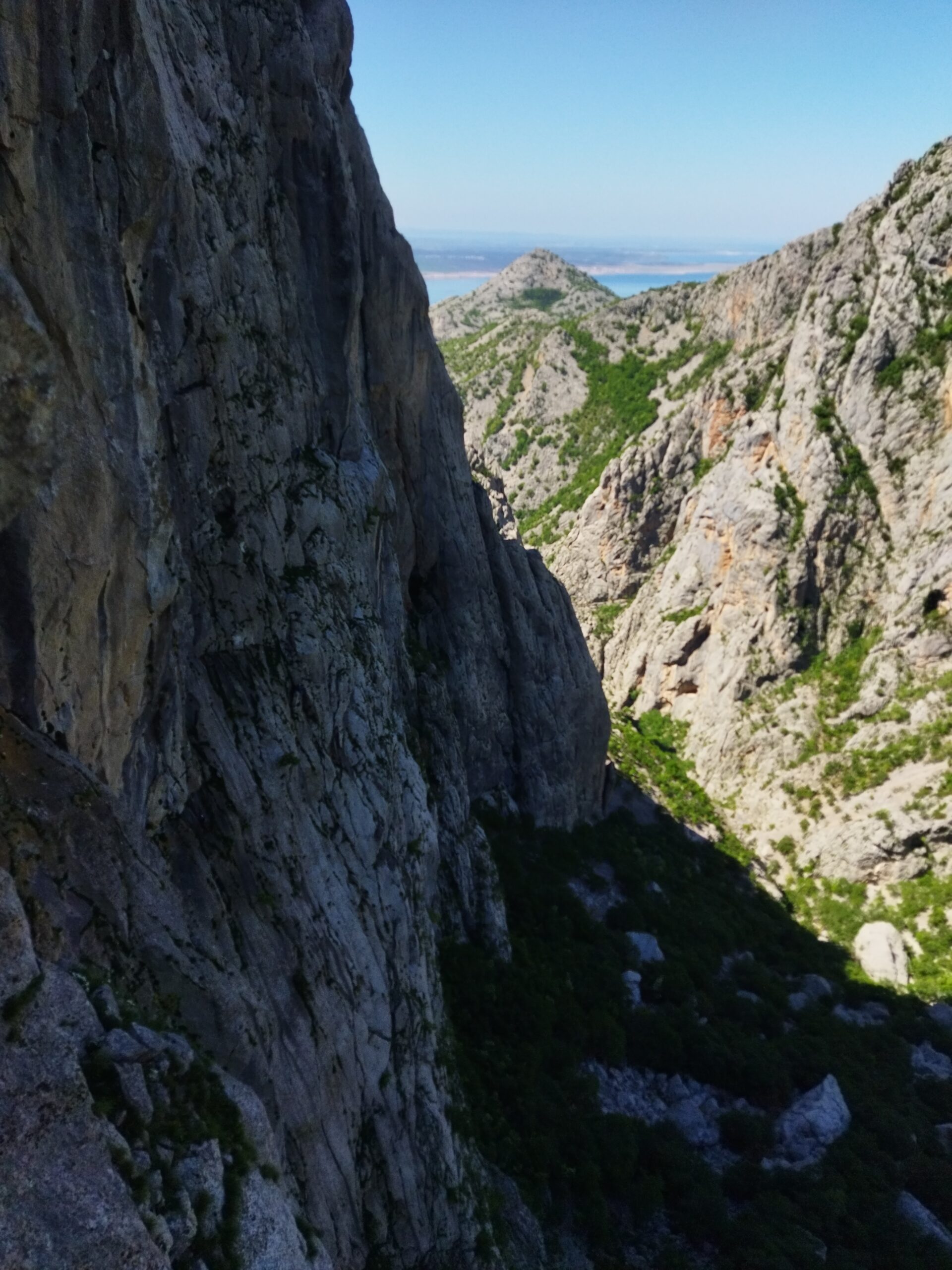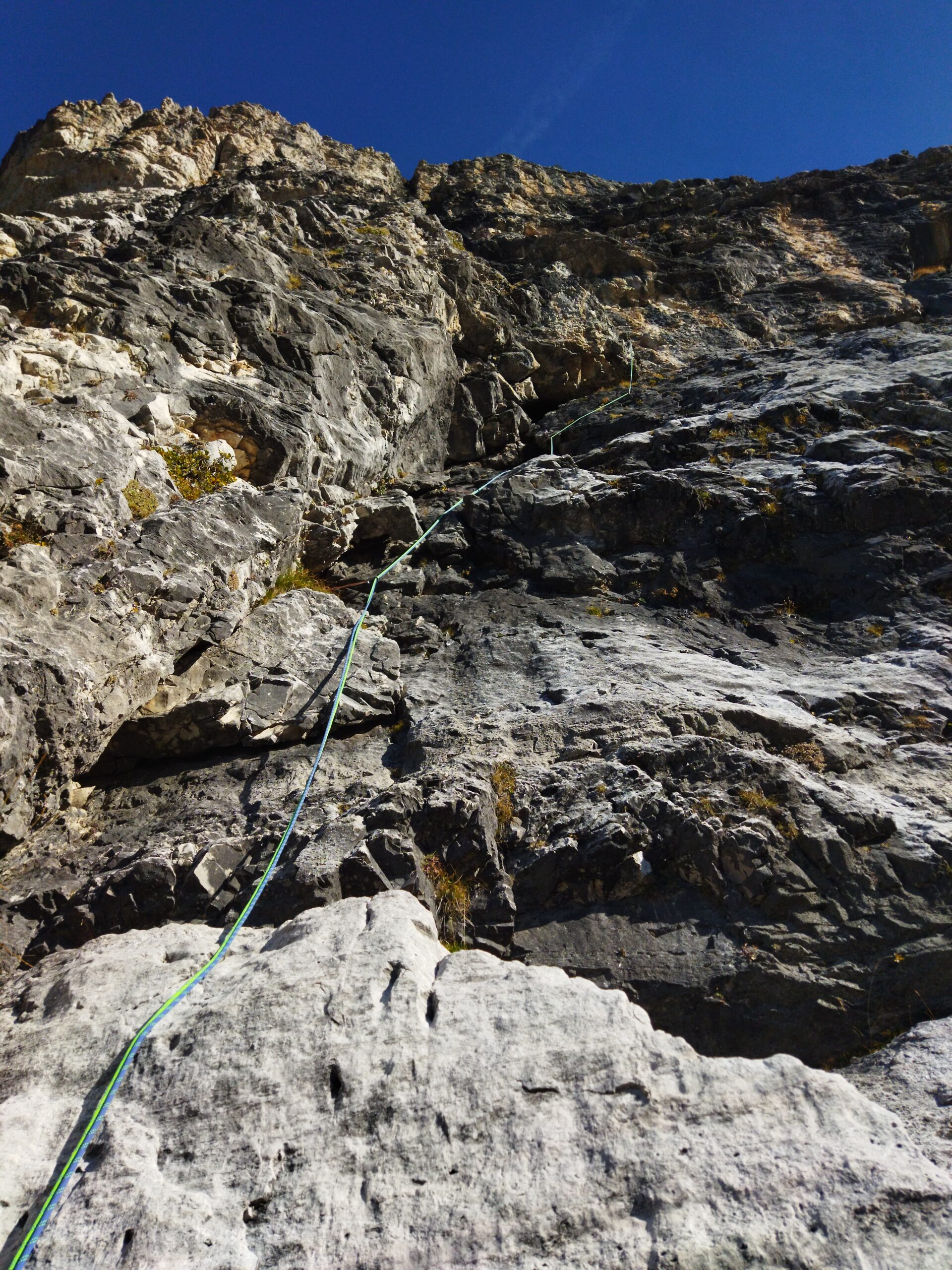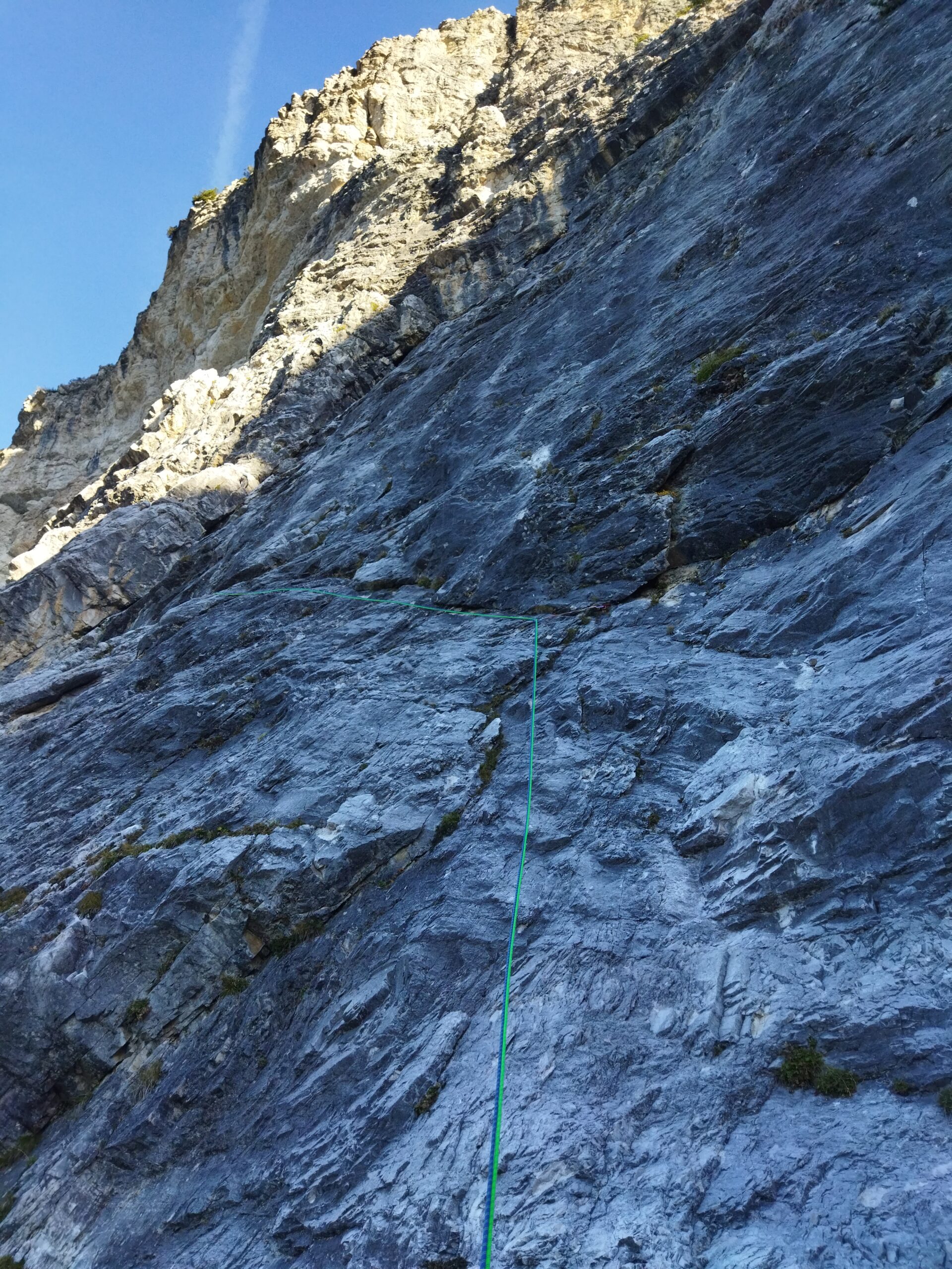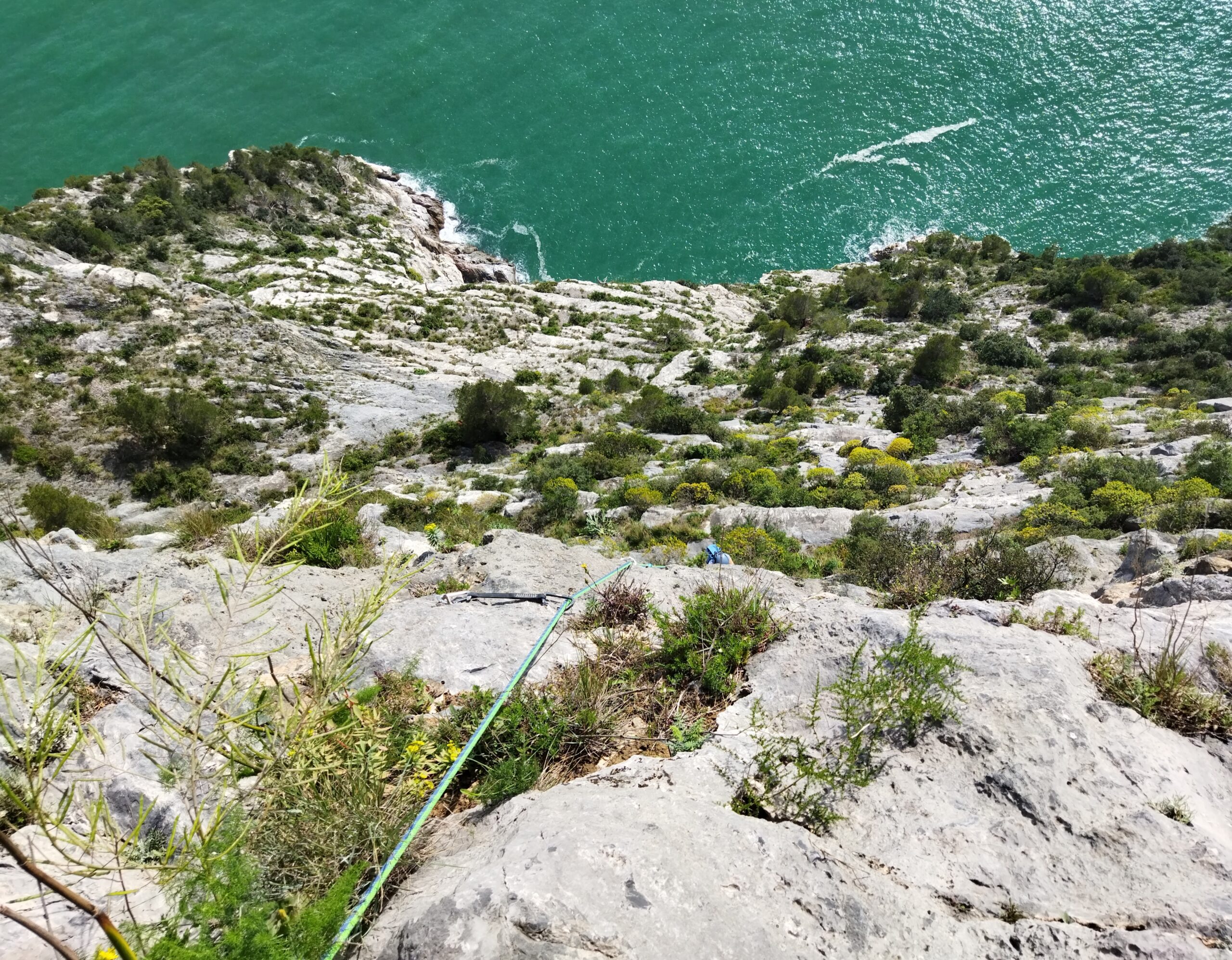 | davec77 | Il paretone | davec77 | Il primo tiro | davec77 | Il traversino ben protetto che parte dalla sommità del secondo camino-lama | davec77 | Il mare è poco lontano | davec77 | Terzultimo tiro, dato 4... mah | davec77 | Dalla vetta