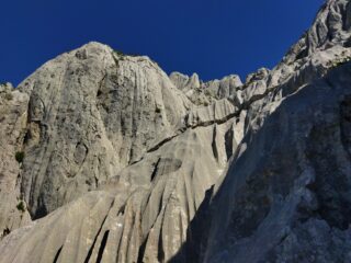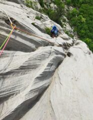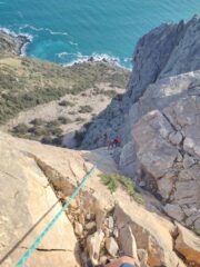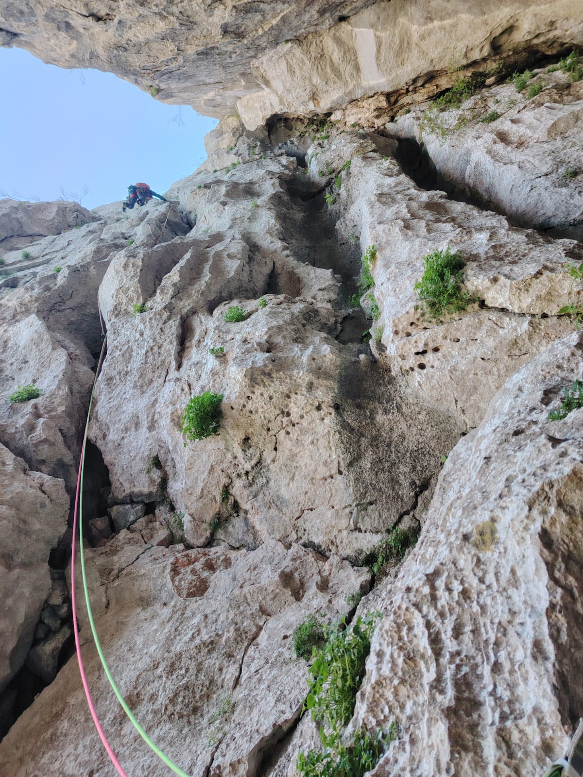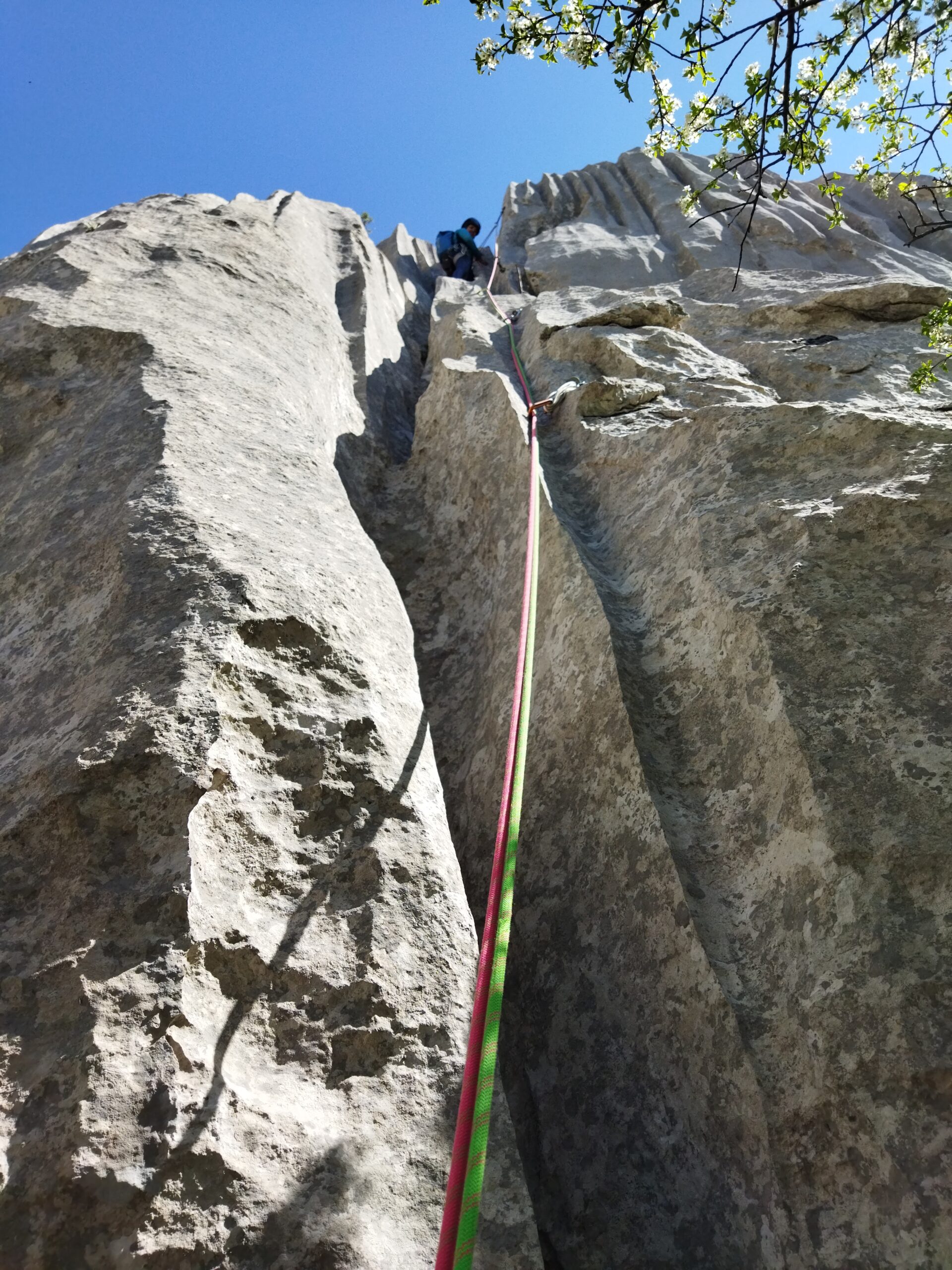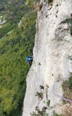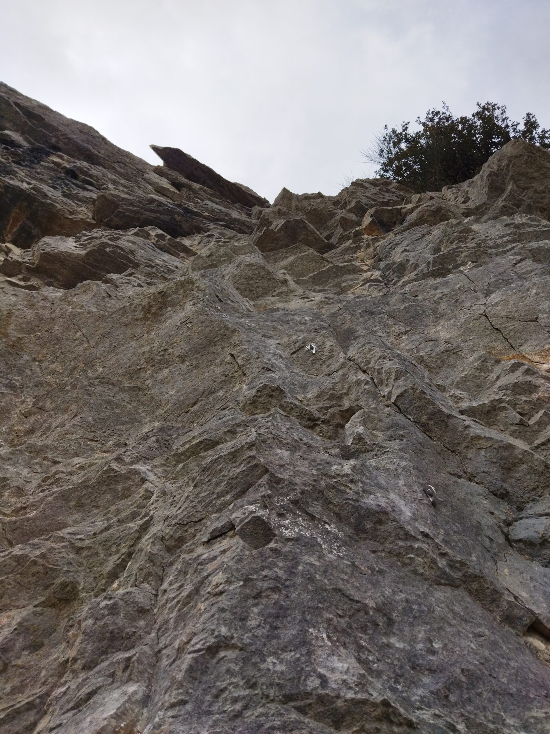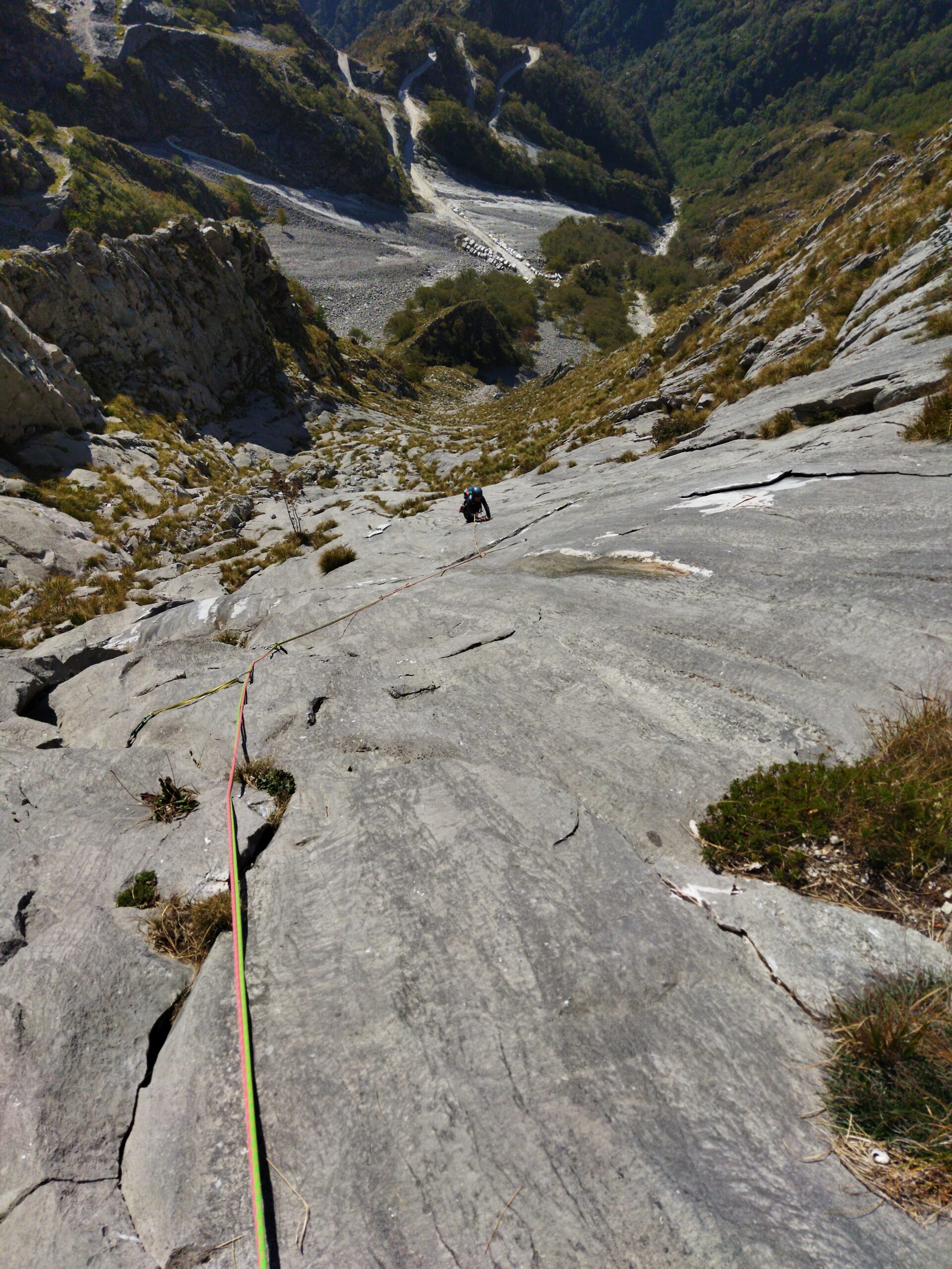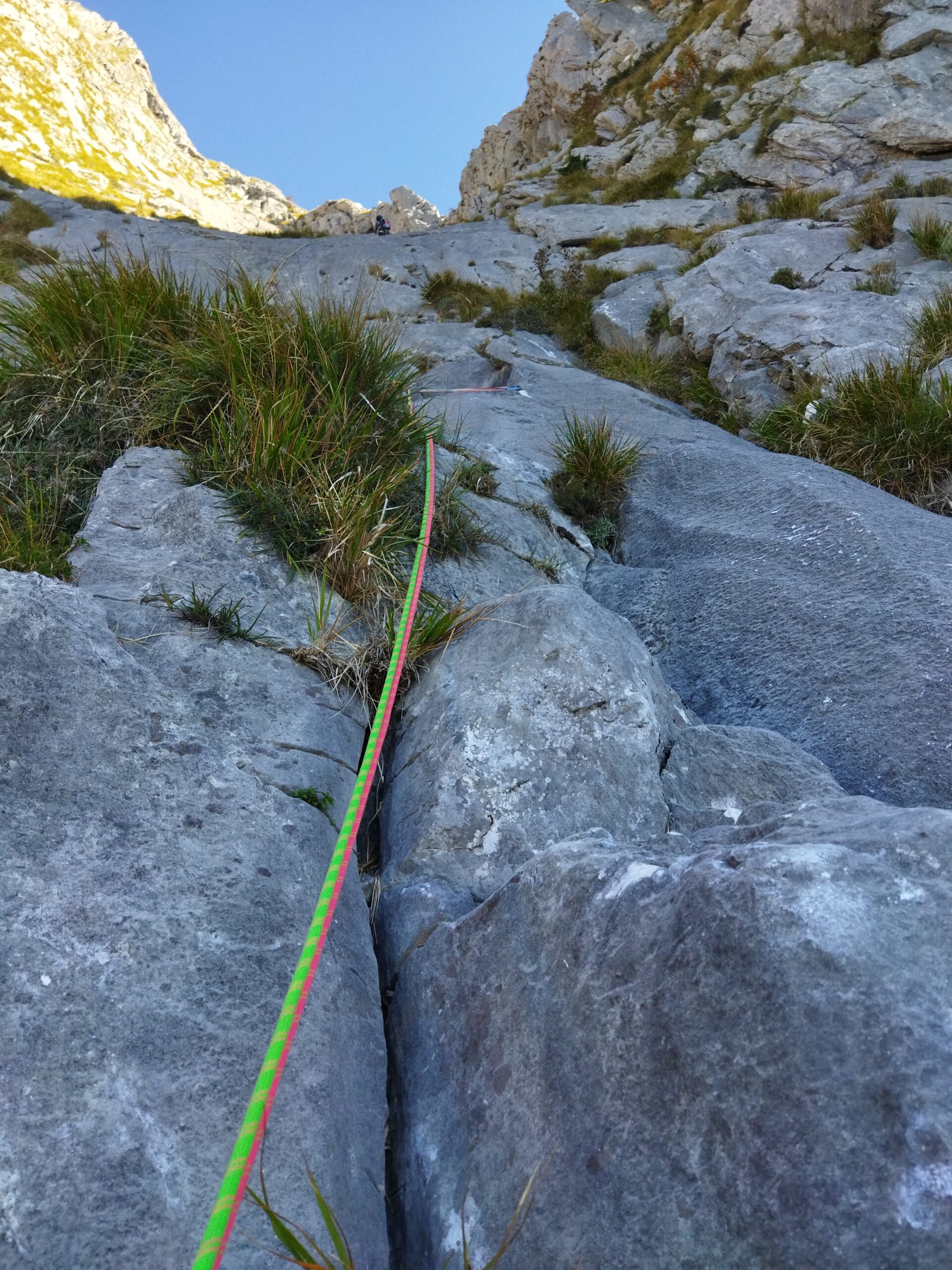 | davec77 | Il paretone | davec77 | Il primo tiro | davec77 | Il traversino ben protetto che parte dalla sommità del secondo camino-lama | davec77 | Il mare è poco lontano | davec77 | Terzultimo tiro, dato 4... mah | davec77 | Dalla vetta