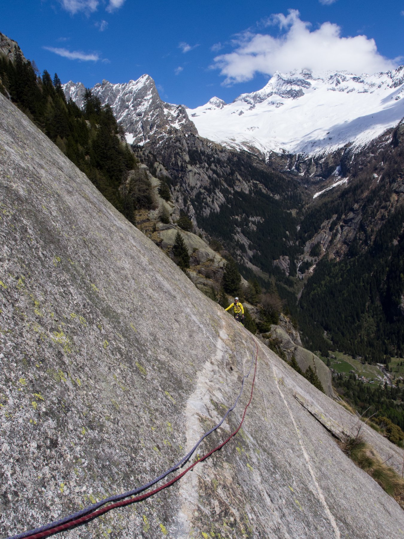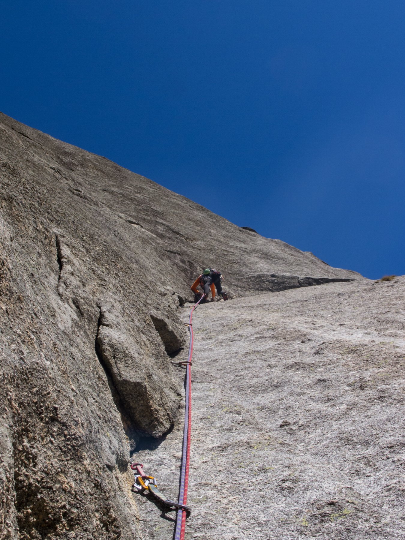 Tutto ok sul Diedro della Dulfer, sempre divertente! Fatta poi Odeon , 3 tiri magnifici,anche lì tutto pulito e perfetto. Visto che ci avanzava tempo…