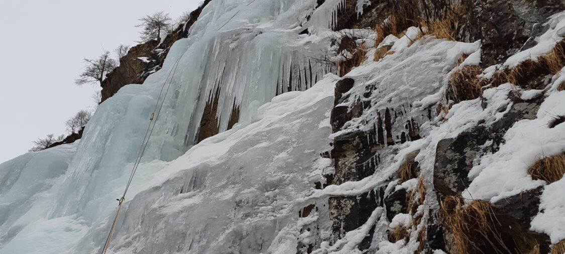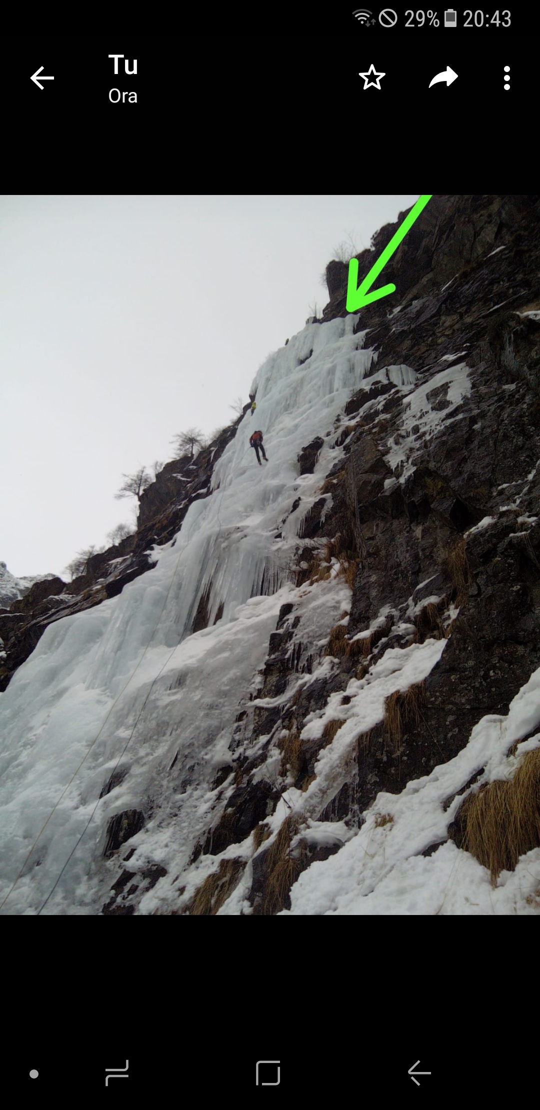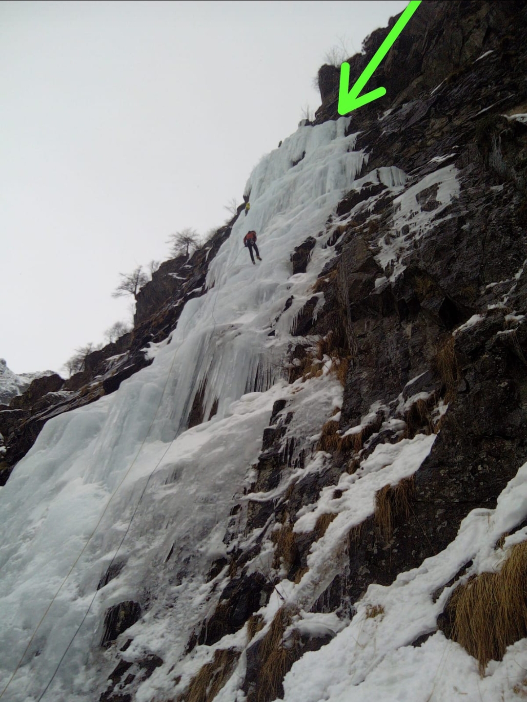Salita con due tiri di corda, prima sosta di salita su ghiaccio a centro cascata , seconda sosta di salita a fine cascata su…