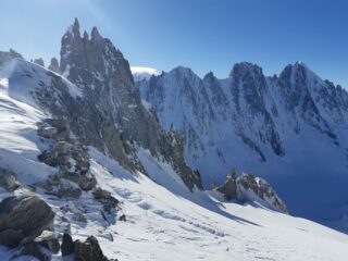 Giornata favolosa in ambiente superbo. Partiti alle 9 dagli impianti Grands Montets di Argentière (Plan Joran + Herse), raggiunto in breve Col de Rachasses. Discesa sul Glacier…