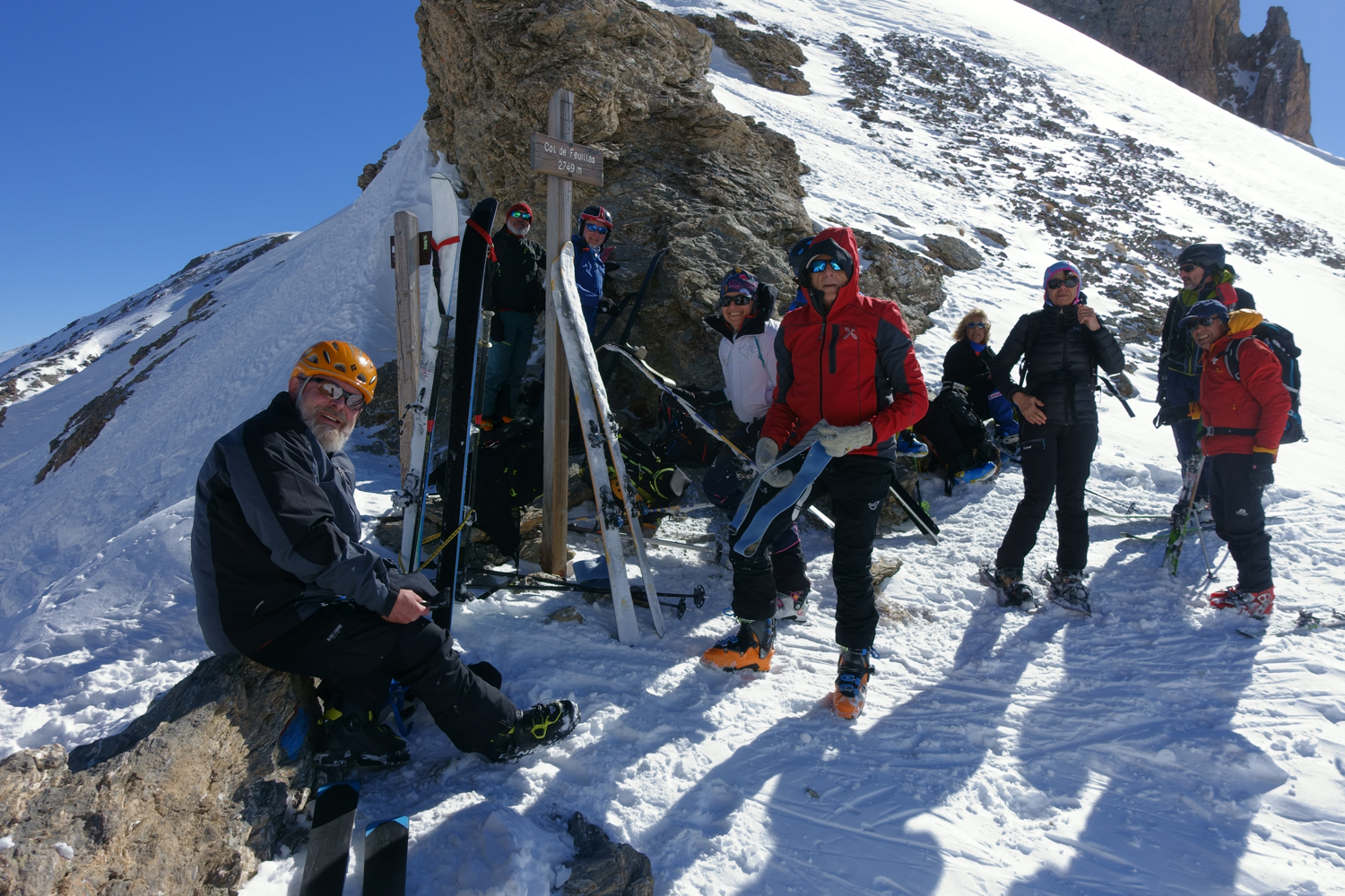 | dovio | L'itinerario | dovio | partenza da le Pontet | dovio | Sul lato destro orografico | dovio | Nel vallone dell'Oronaye | dovio | Si gira a sinistra verso il colle | dovio | Sotto il colle Feuillas | dovio | Arrivo al colle | dovio | Al colle Feuillas | dovio | Partenza | dovio | Neve bella