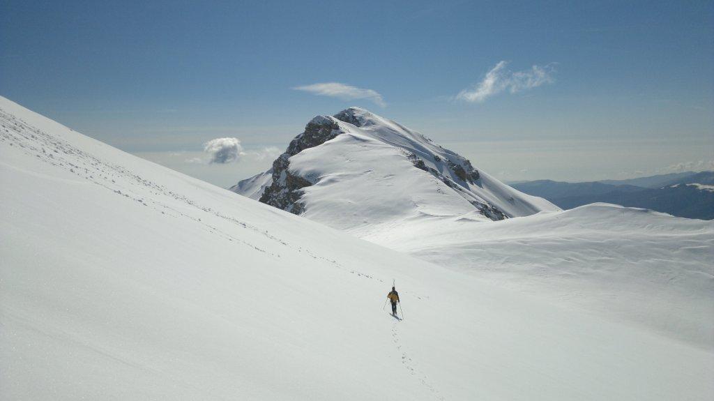 Non trovando il sentiero giusto siamo saliti dal Bocchino dell'Aseo, più lunga ma forse più panoramica. La discesa molto bella su neve trasformata. Il salto…