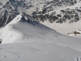 | droppy | Salendo lungo la strada del Colle | droppy | | droppy | Il Monviso come si presente sbucando al colletto | droppy | verso la cima | droppy | La comitiva | droppy | | droppy |