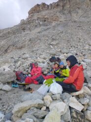 Un po' complicata la parte alta del ghiacciaio di Bors. Noi l'abbiamo evitata traversando a destra e risalendo un crestone di sfasciumi. Cresta della Giordani…