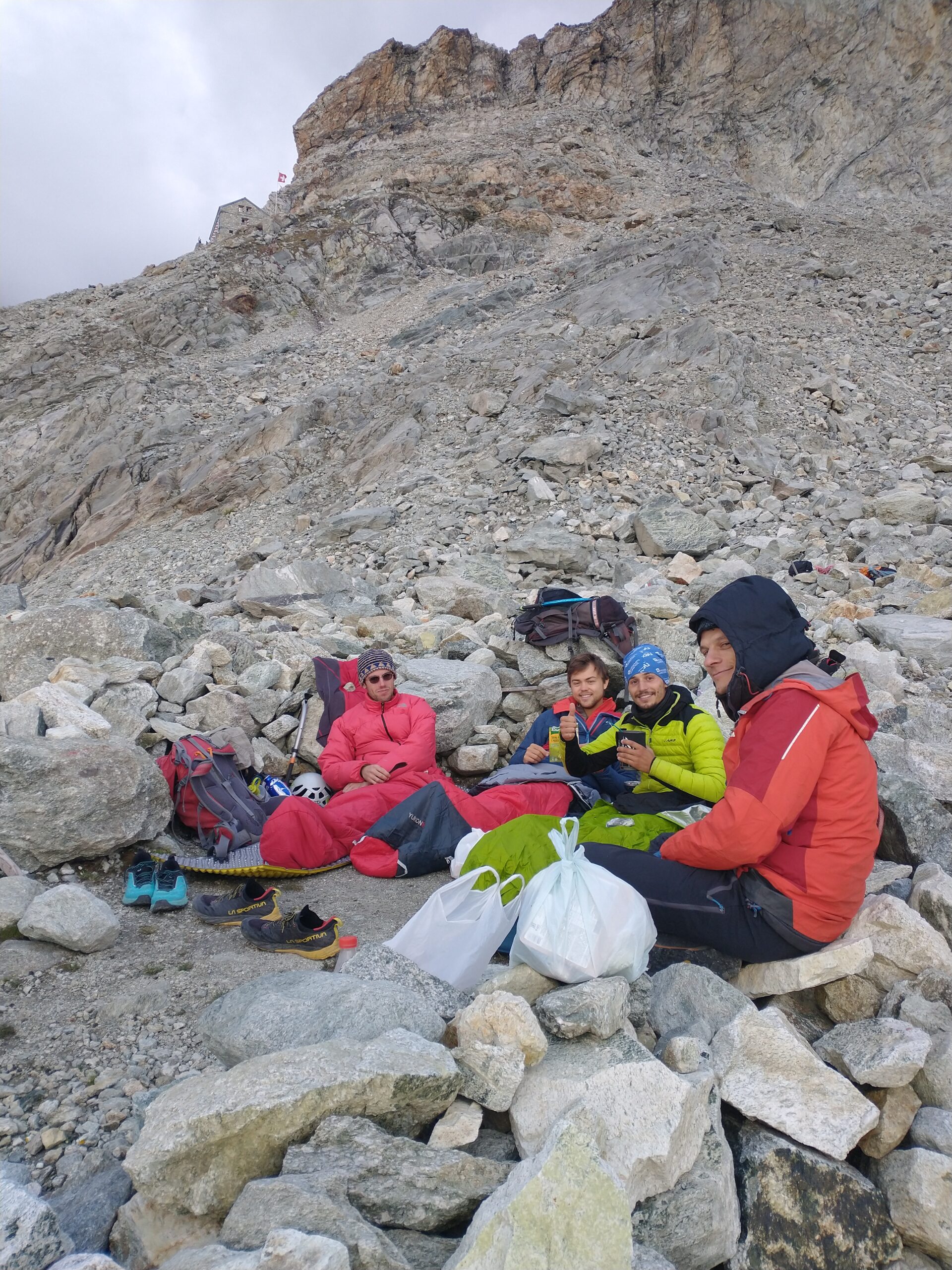Rifugio al gran completo nel weekend, ma buone piazzole per bivaccare poco sotto. Avvicinamento notturno ben segnalato, con piccolo tratto di ghiacciaio secco che noi…