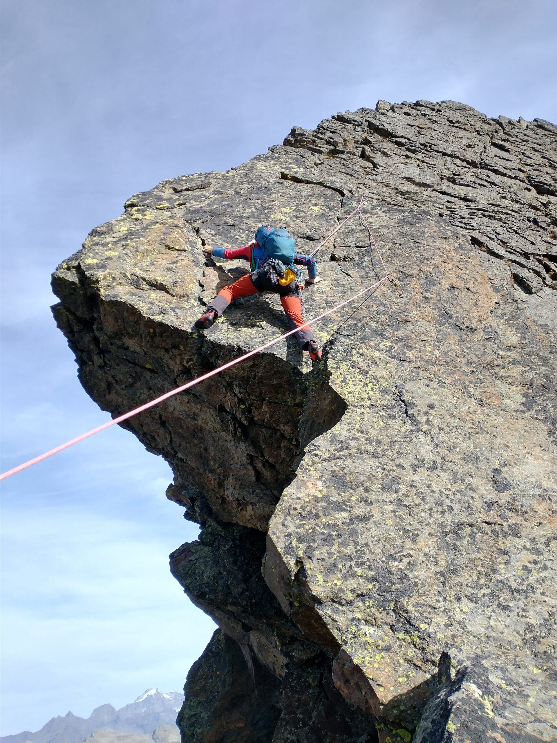Prenotazione on line obbligatoria per il bivacco. Cresta asciutta senza traccia della nevicata recente. In discesa molte doppie in parte disarrampicabili. Avevamo una corda da…