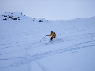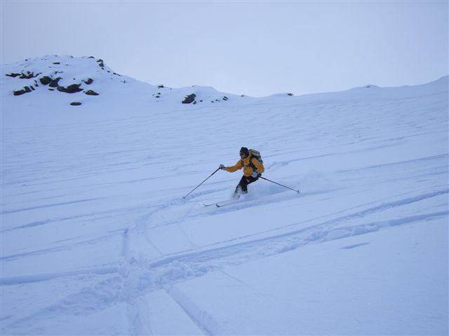 Partito molto tardi dalla diga sono comunque riuscito a scendere con mezzo metro di neve fresca polverosa! Sciata imperiale! Gita lunga per il trasferimento dalla…