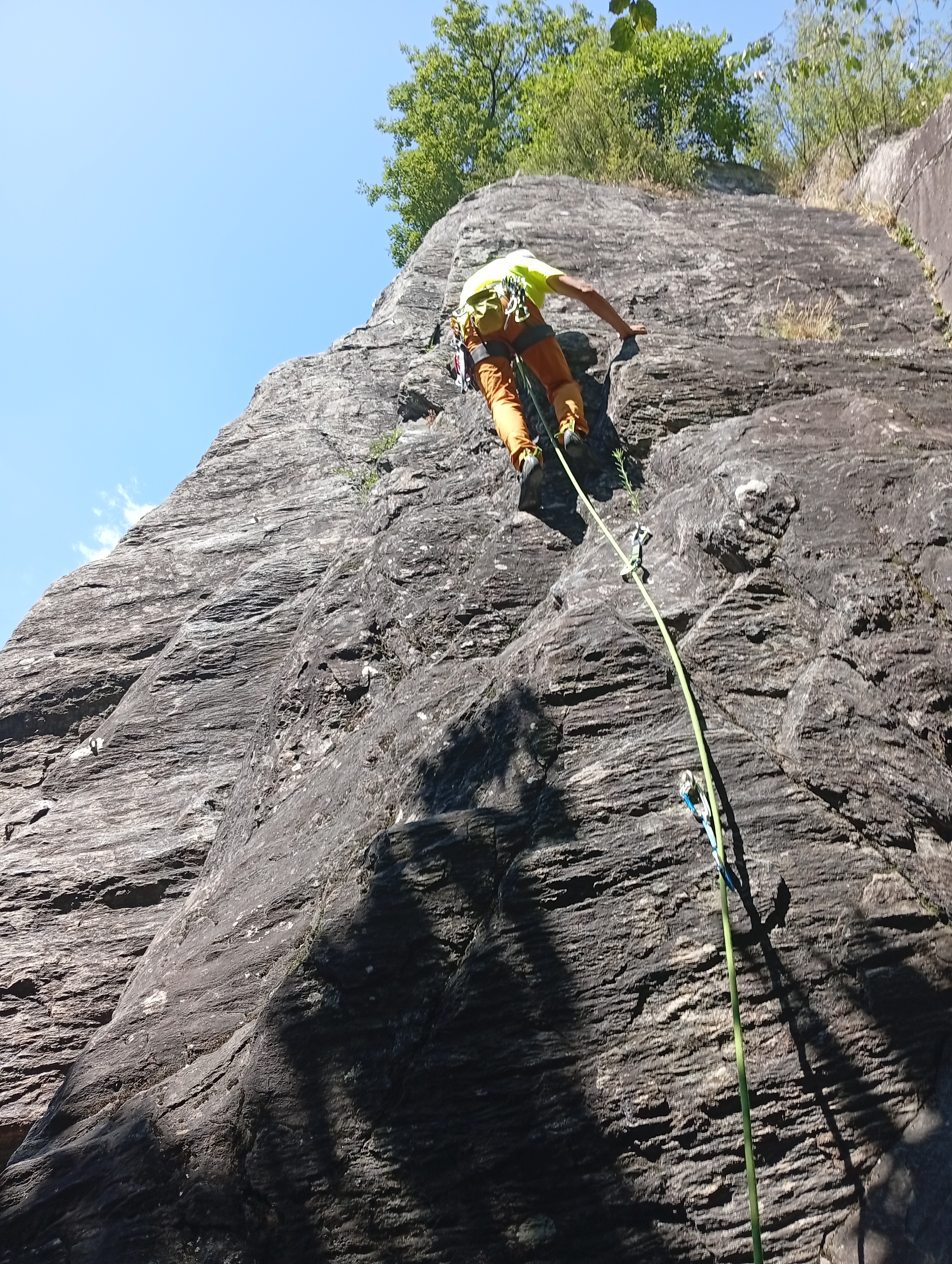 Arrampicata su placca, gradi facili, bello se piace la placca. Ci siamo spostati qui dopo una mattinata al settore Étoile, troppo caldo.