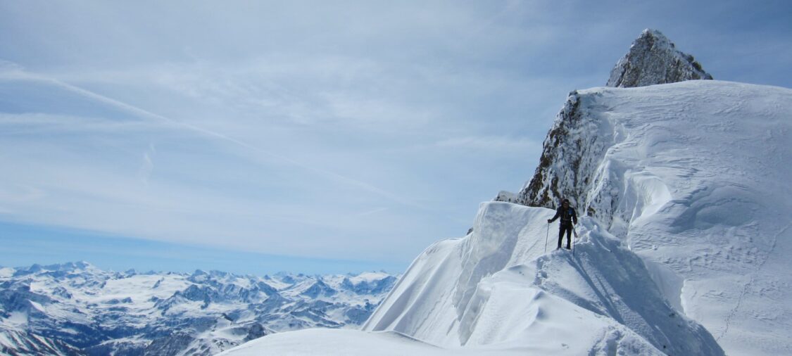 superba gita decisamente lunga(1800mt e 30 km di sviluppo) fatta in giornata in 9.20h battendo traccia. neve a sud e sulle cime ventata, polverosa…