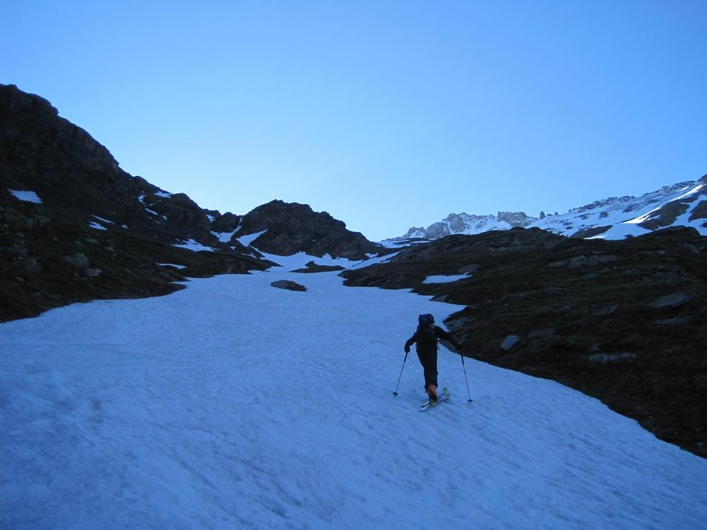 per data e meteo eravamo un po' titubanti, trovato invece neve in buone condizioni, compatta, mai sfondosa neanche nell'ultimo canale fronte scarfiotti scesi verso le 11…