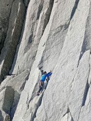 | edodai | La parte tratteggiata in verde rappresenta il canalino incassato classico della via, quella di fianco tratteggiata in rosso è la paretina di misto che ho percorso.
