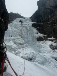 Cascata ben formata. Neve solo nel conoide di avvicinamento sotto la cascata. Attenzione al sentiero spesso ghiacciato. Con Luca e Fabrizio