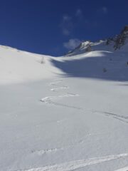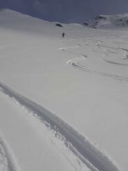 Partiti sci ai piedi dal santuario, seguendo per un tratto la strada della fauniera. Neve molto variabile, dalla crosta portante a valloncelli con neve più farinosa,…