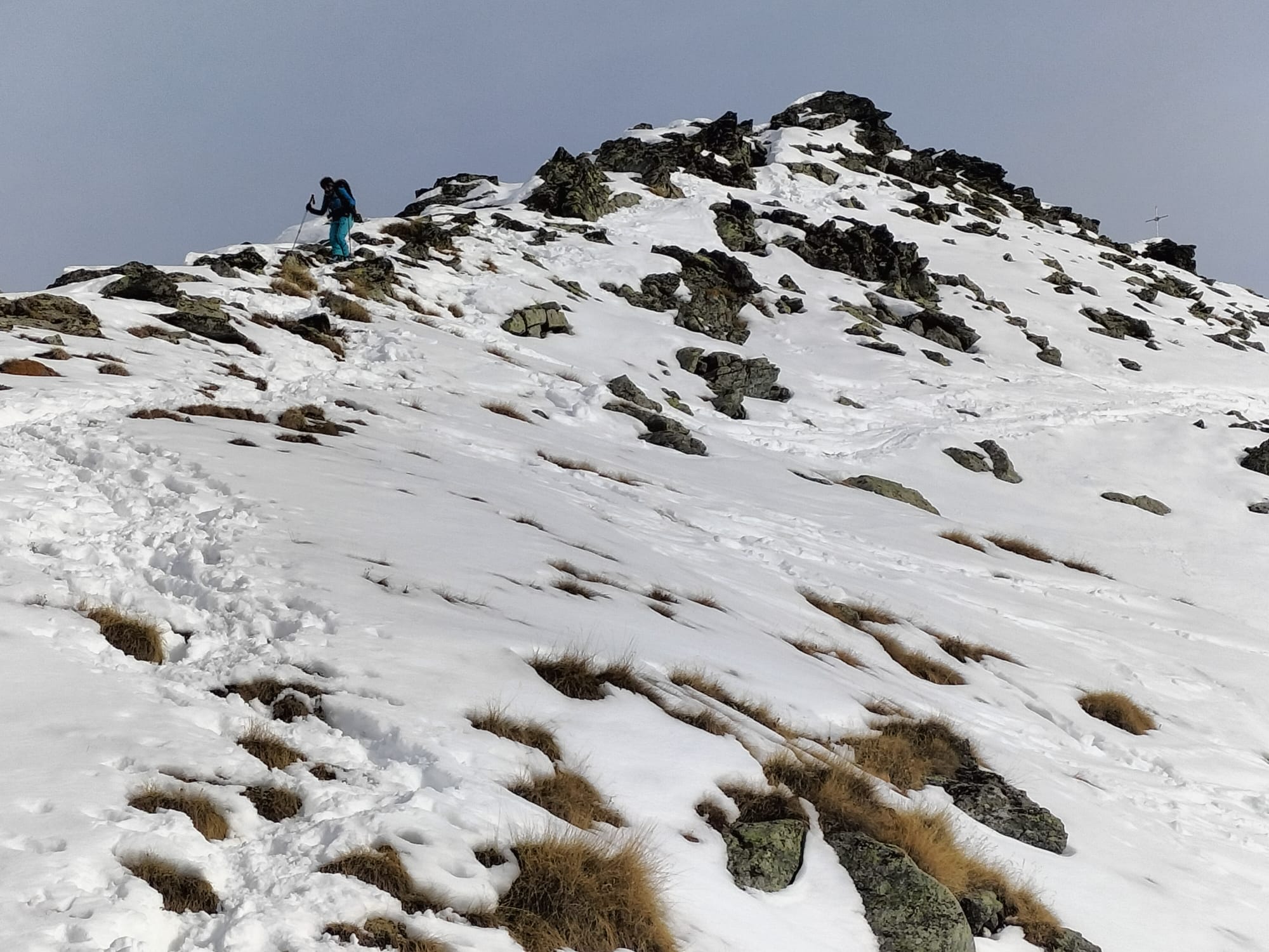 Neve dalla partenza. Da sopra il santuario molta erba e rocce affioranti. Si arriva sci ai piedi al colletto e si raggiunge la vetta a…