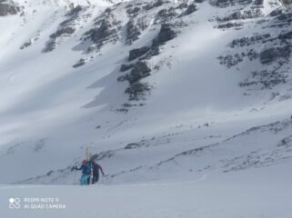 Partiti sci ai piedi dal colle con temperature basse e vento. Per fortuna col sole la situazione climatica migliora. Il "traverso" è in ottime condizioni,…