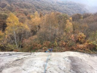 Gita armati di roncola, abbiamo pulito la base di tutti i tiri. Scalato tutti i tiri "in alto", i piu facili (senza gradi). Fittoni in…