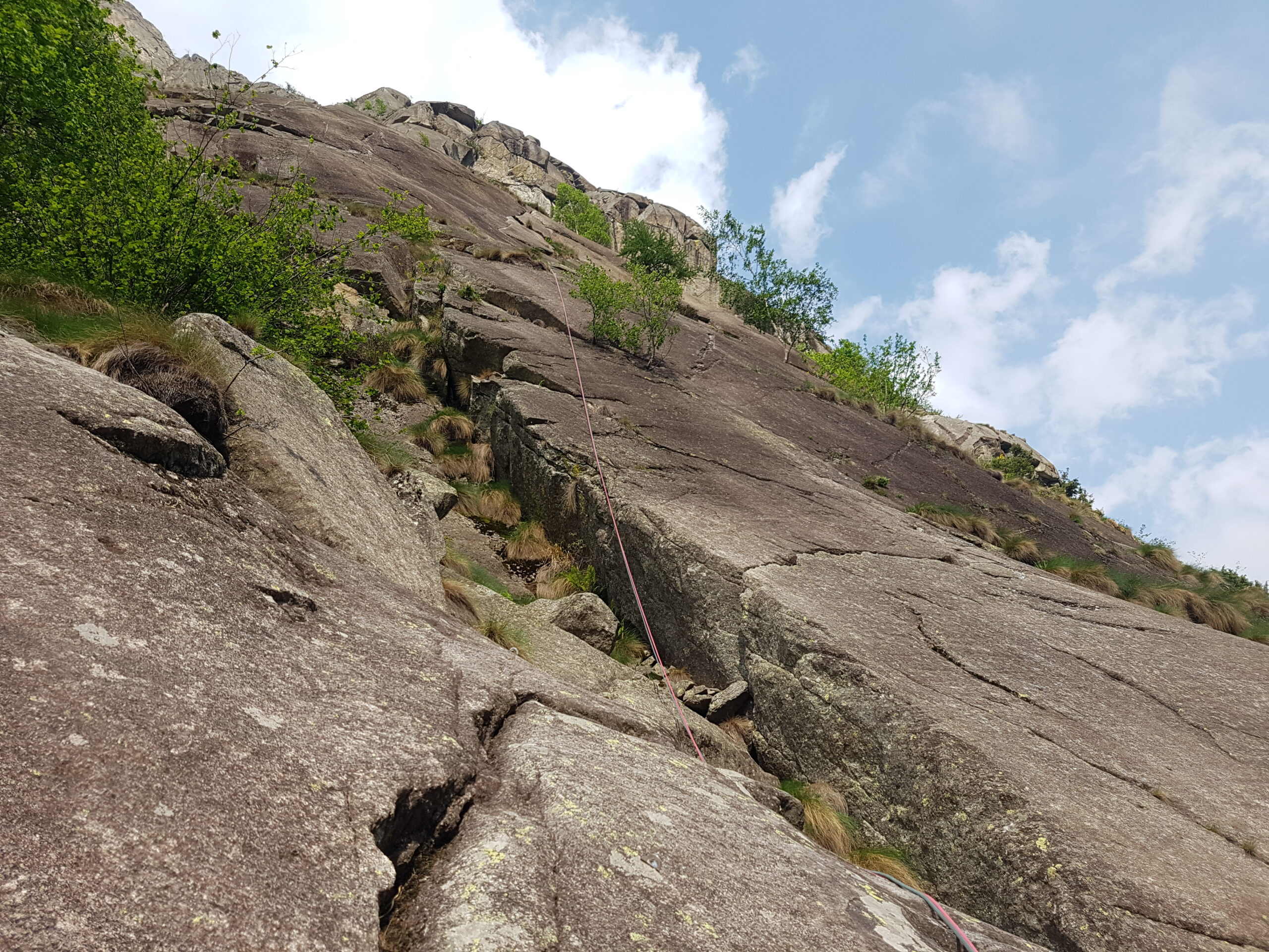 La cengia è evidente, ed il percorso fino al diedro giallo, intuitivo. Dopodiché noi, la nostra salita, la abbiamo soprannominata "PIATTO UNICO"…