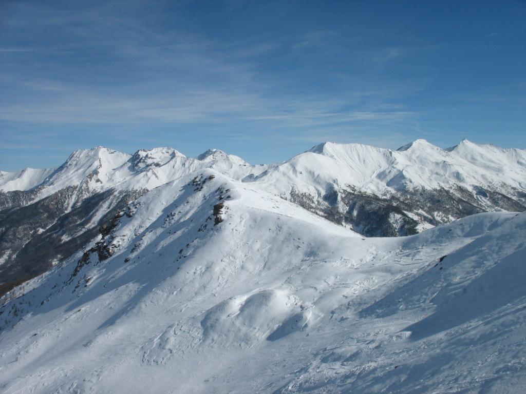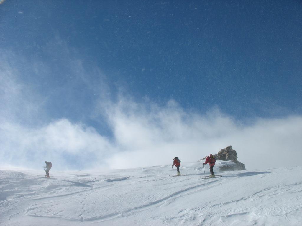 | emilius | dopo la partenza della seggiovia | emilius | sulla destra il vallone di salita | emilius | il pendio lavorato dal vento | emilius | i pendii intermedi | emilius | cerchiamo riparo sotto la punta | emilius | risaliamo la cresta per la discesa | emilius | un bel tratto in discesa