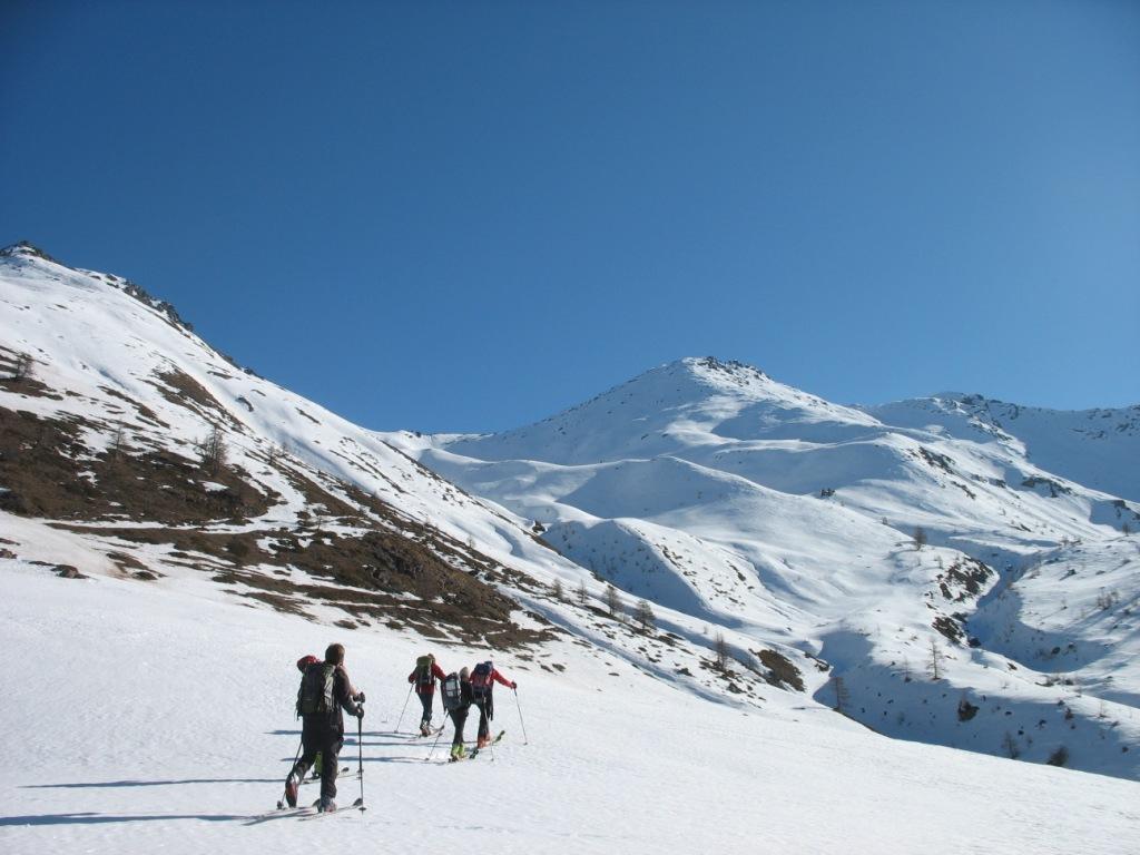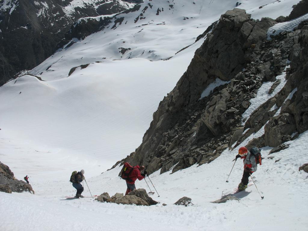 | emilius | salendo sulla morena | emilius | pendii mediani e muretto evitabile a destra | emilius | Lucia e Stefano sotto la cornice | emilius | l'ultima fatica....