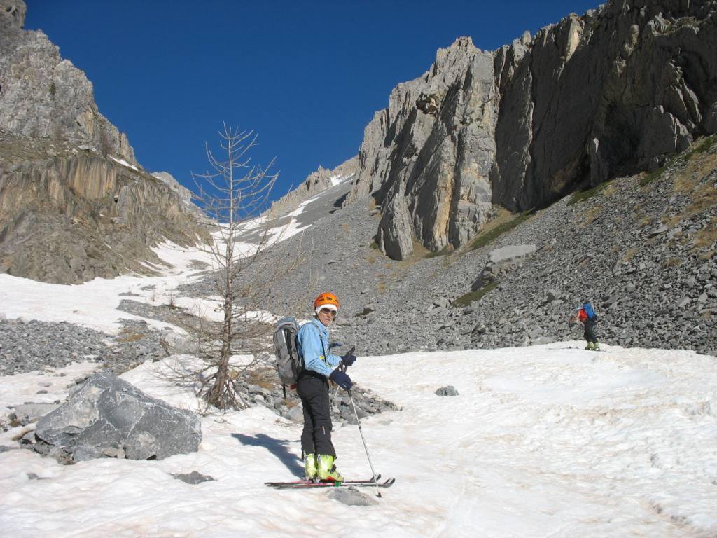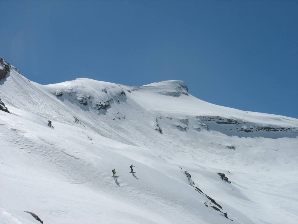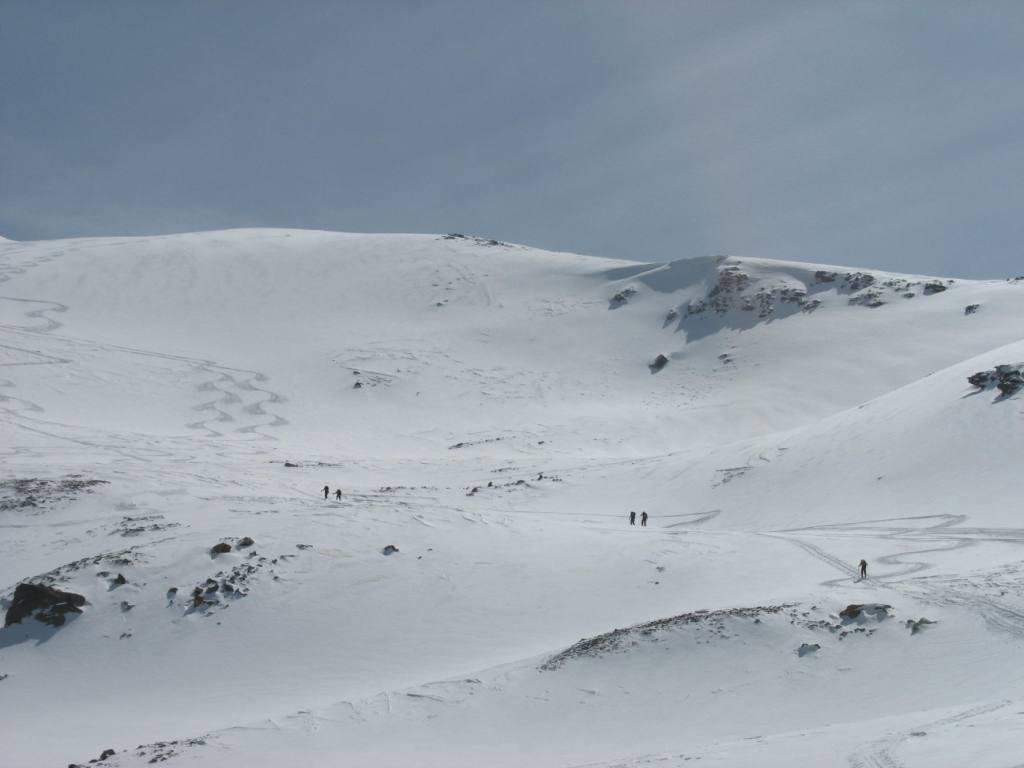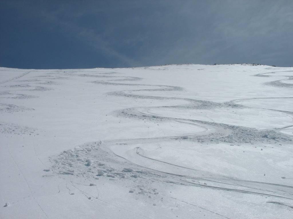 3*. Siamo partiti da quota 1500, poi la strada è ostruita. Con un taglio a sx ci siamo portati sul percorso classico. Non malaccio il pendio…
