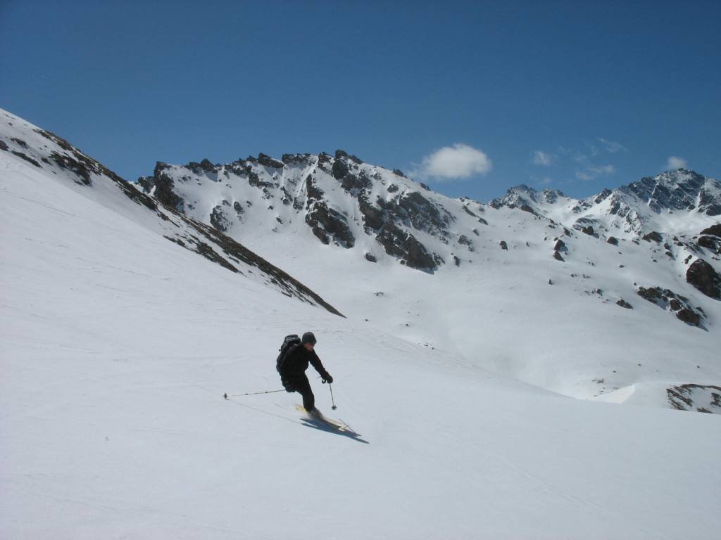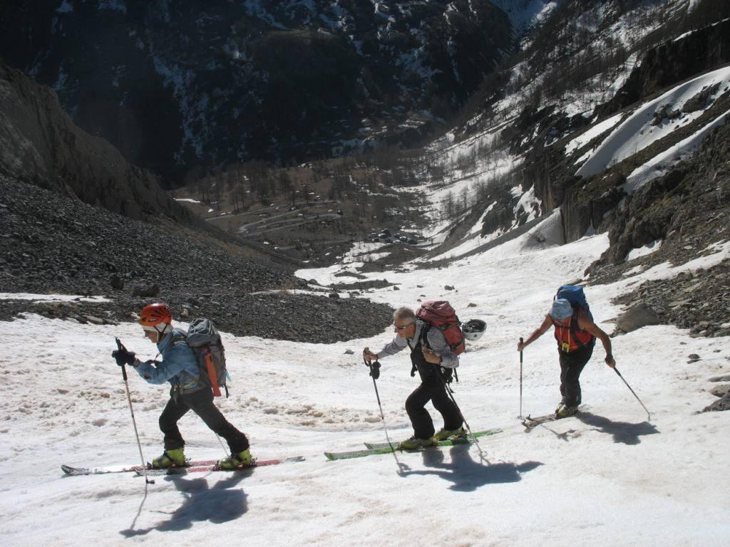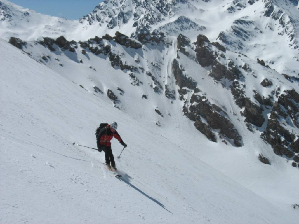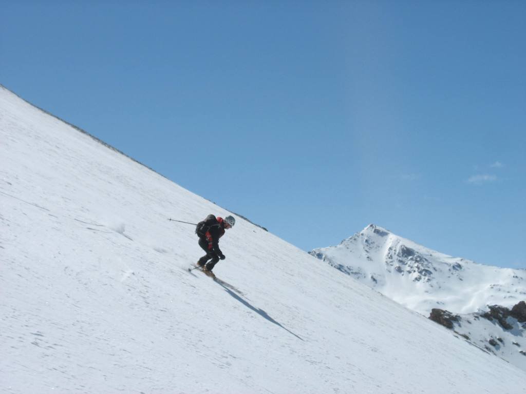 3*. Siamo partiti da quota 1500, poi la strada è ostruita. Con un taglio a sx ci siamo portati sul percorso classico. Non malaccio il pendio…