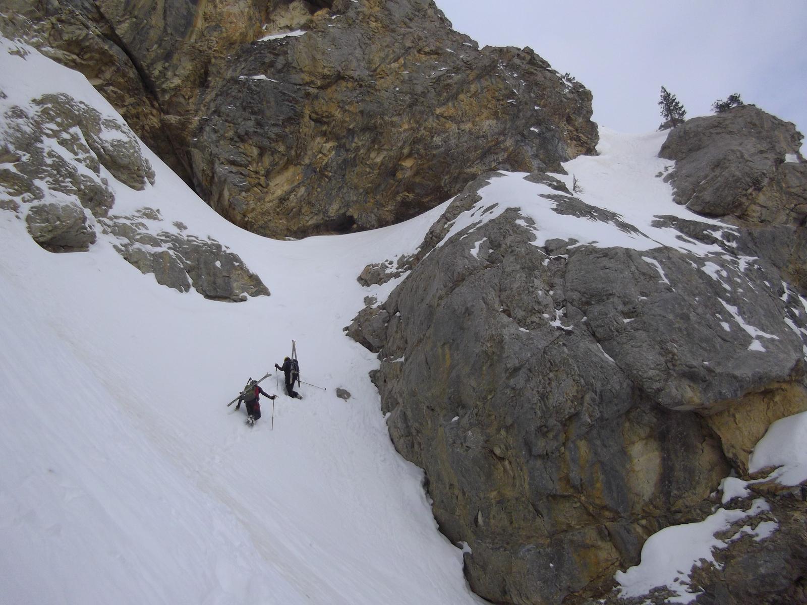 | endrius_89 | dettaglio dell'uscita. il giallo segna passaggio coperto alla vista | endrius_89 | Imbocco canale | endrius_89 | prima sezione | endrius_89 | Traverso alla fine della prima sezione | endrius_89 | verso la nicchia | endrius_89 | pendii sommitali | endrius_89 | Fede decolla | endrius_89 | Dax saltella | endrius_89 | il nonno se la ride