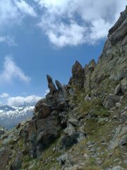 Faticoso procedere spesso su brecciolino. Via prevalentemente escursionistica (ma volendo si forzano dei passaggi sul II ai margini del sentiero) con dei passaggi duri fuori…