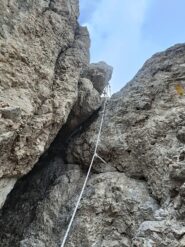 Chiodatura perfetta, attenzione solo ad attriti delle corde (allungare bene dove serve). Attacco ben segnalato. Dopo L2 NON SEGUIRE I BOLLI ma andare decisi subito verso…