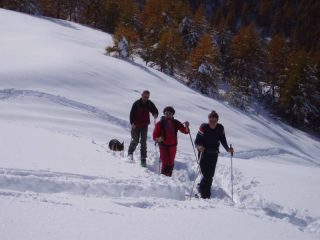 Fatti 200 metri di dislivello! Giusto per capire che non era giornata. Ritorno, alcuni a piedi (!), a Ghigo e poi, grazie alle tracce di generosi battitori…