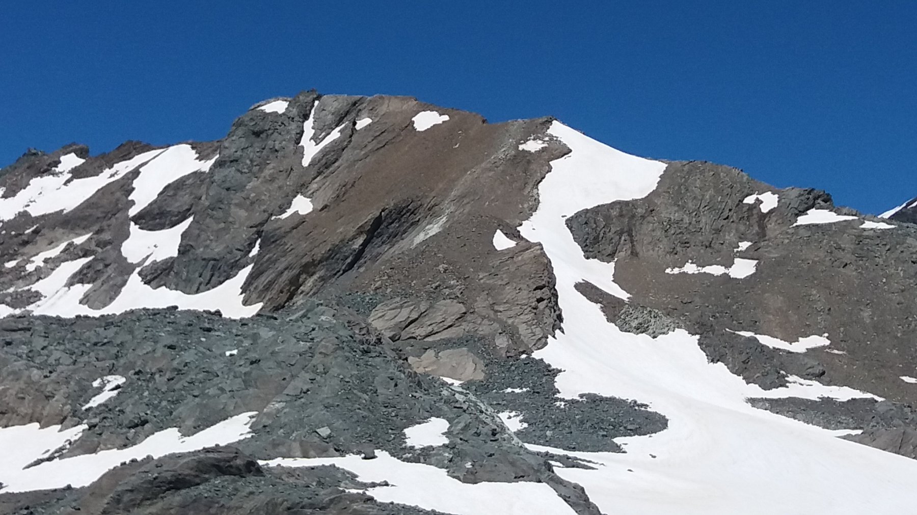| enrico | La meta (in realta' l'anticima) vista dal parcheggio | enrico | Percorso di salita, da poco sotto il bivacco Blais (lato francese) | enrico | Bruna poco sotto l'anticima | enrico | Paesaggio lunare scendendo da punta Sommeiller