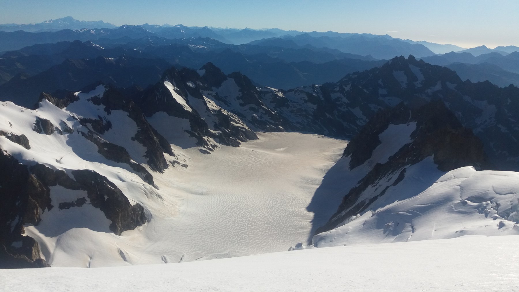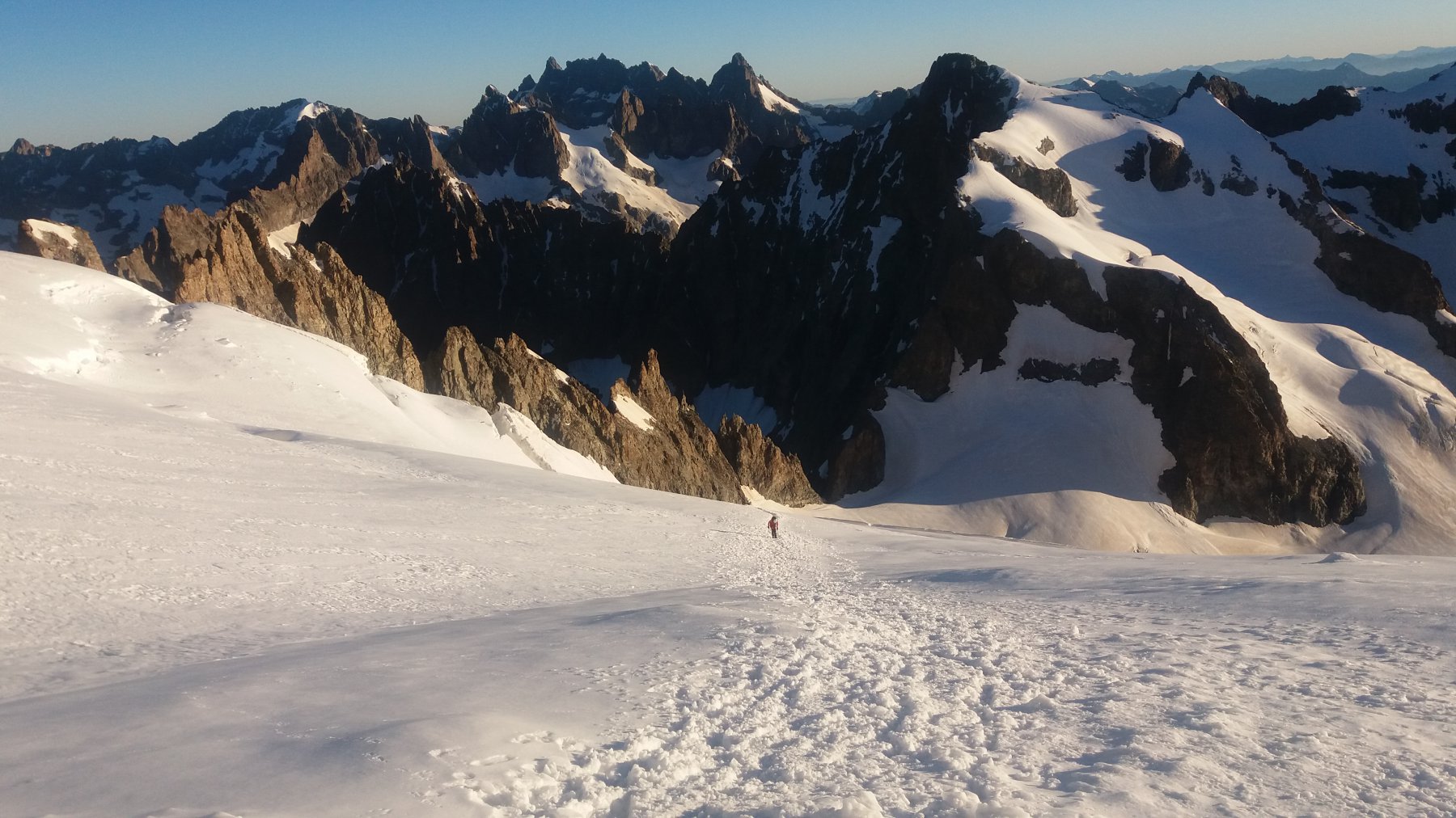 | enrico | Bivacco | enrico | Luci della sera | enrico | Custode del bivacco | enrico | Punta Tonini a sx, luci dell'alba | enrico | Arrivando al piano superiore del vallone | enrico | Sotto i seracchi del ghiacciaio Tonini | enrico | Colle di Sea | enrico | Dalla punta Tonini, Ciamarella N ormai secca | enrico | In cima, Albaron alle spalle | enrico | Verso il ghiacciaio Tonini e il vallone di Sea | enrico | Inizio della lunga discesa | enrico | Puntando verso il rifugio, nell'immensita' del Glacier Blanc | enrico | Zona intermedia della salita | enrico | Dalla cima, sguardo al percorso di salita | enrico | In vetta