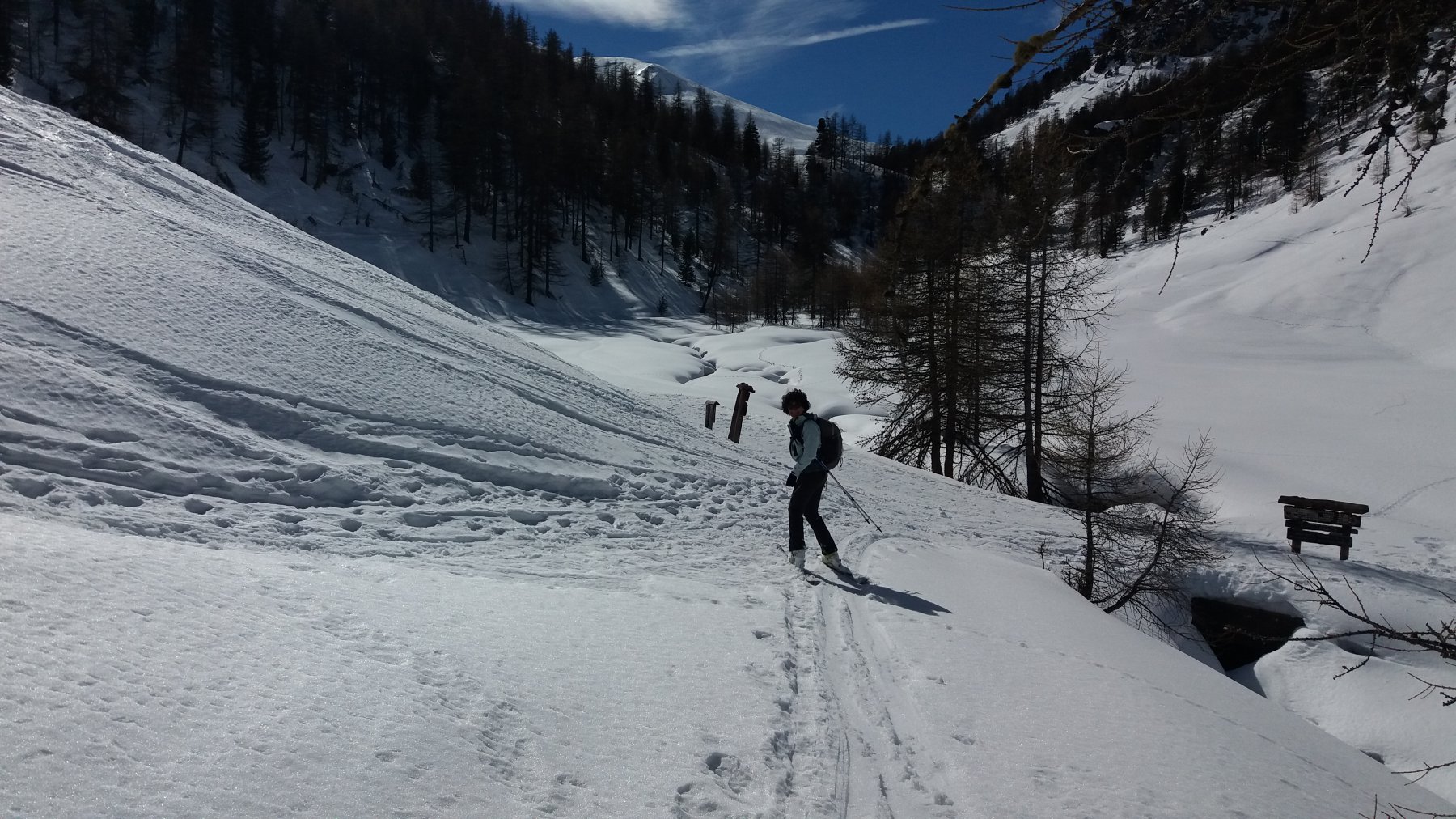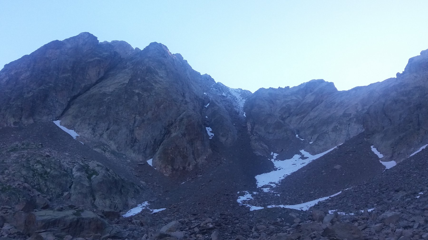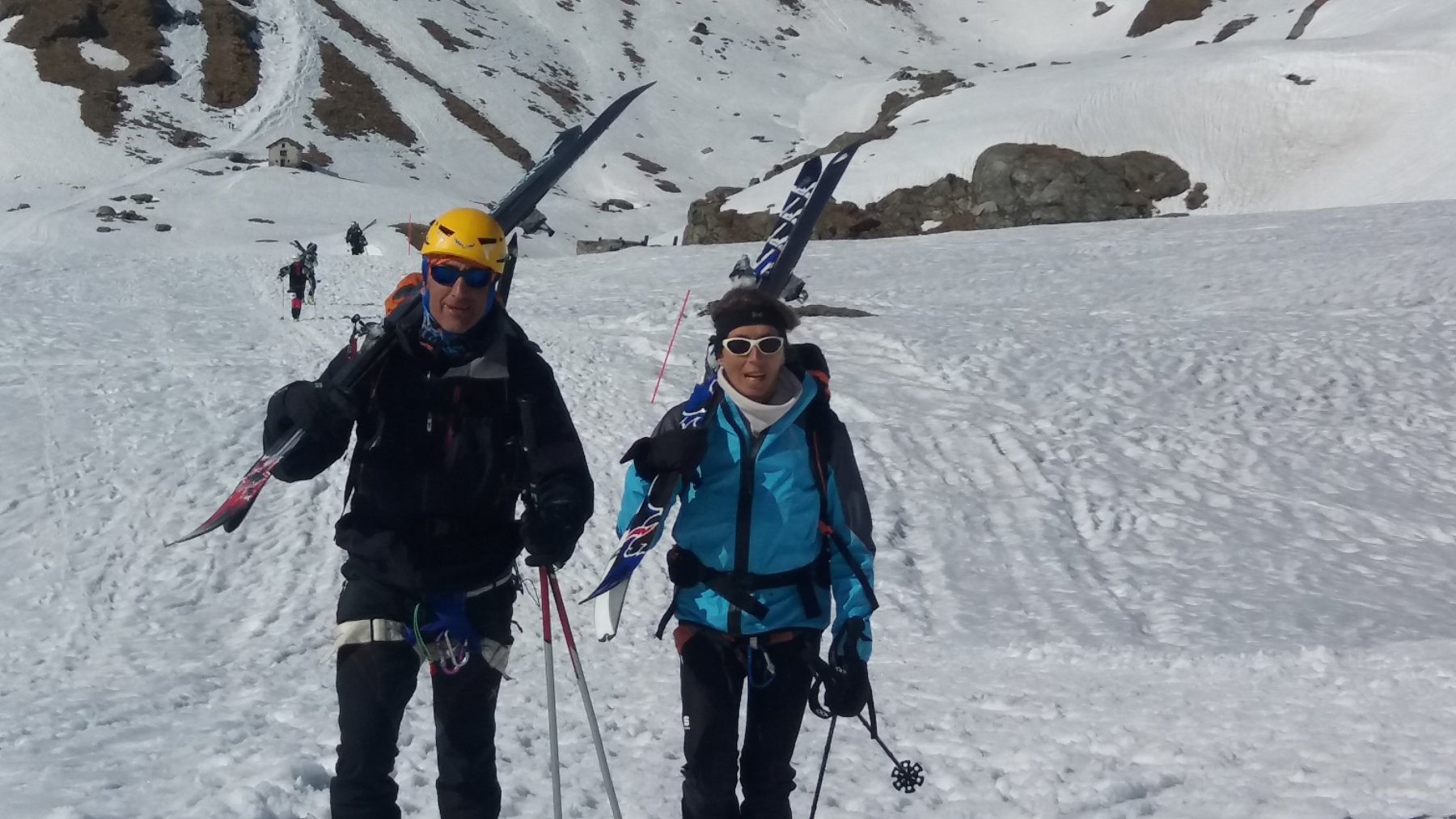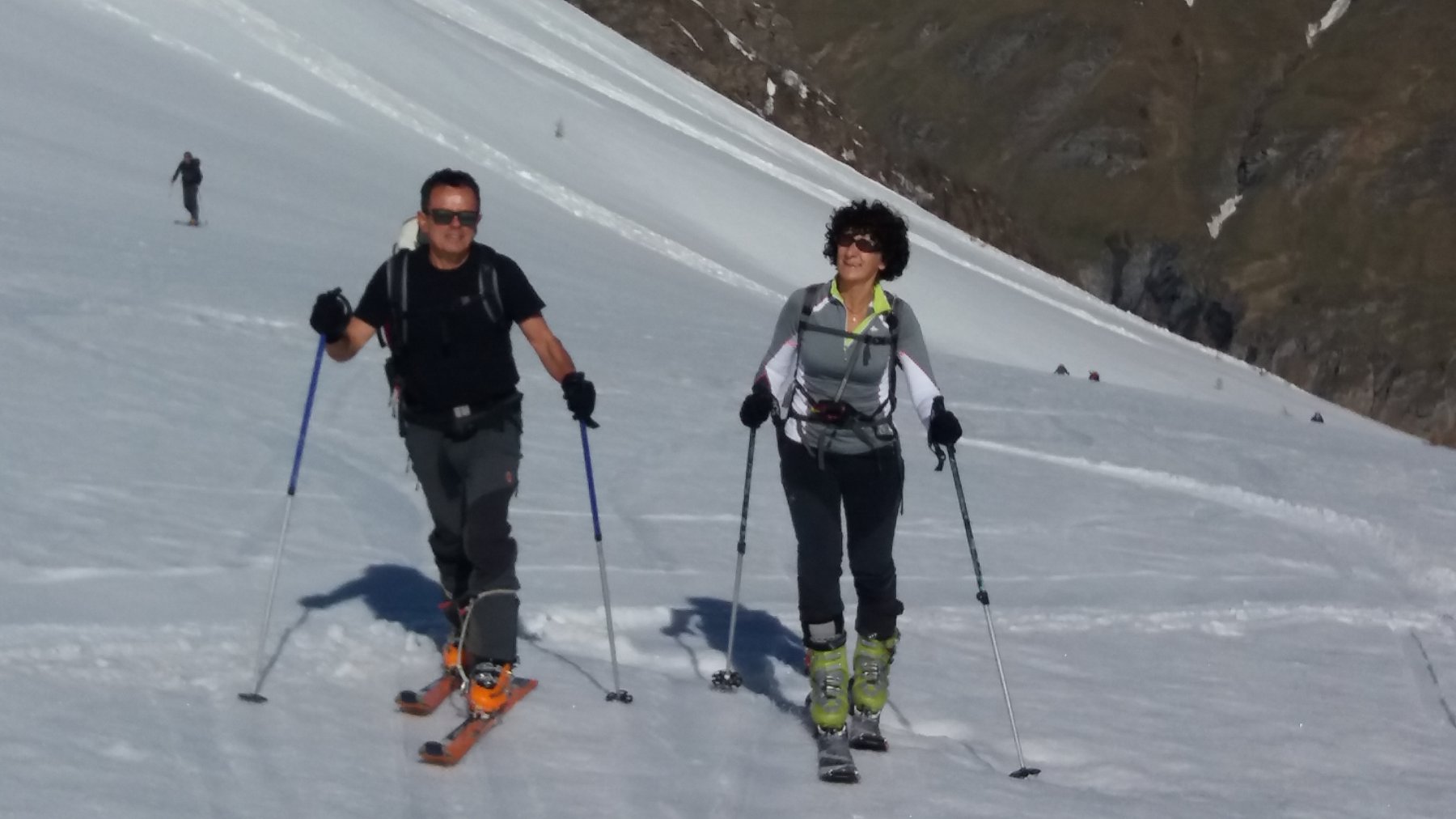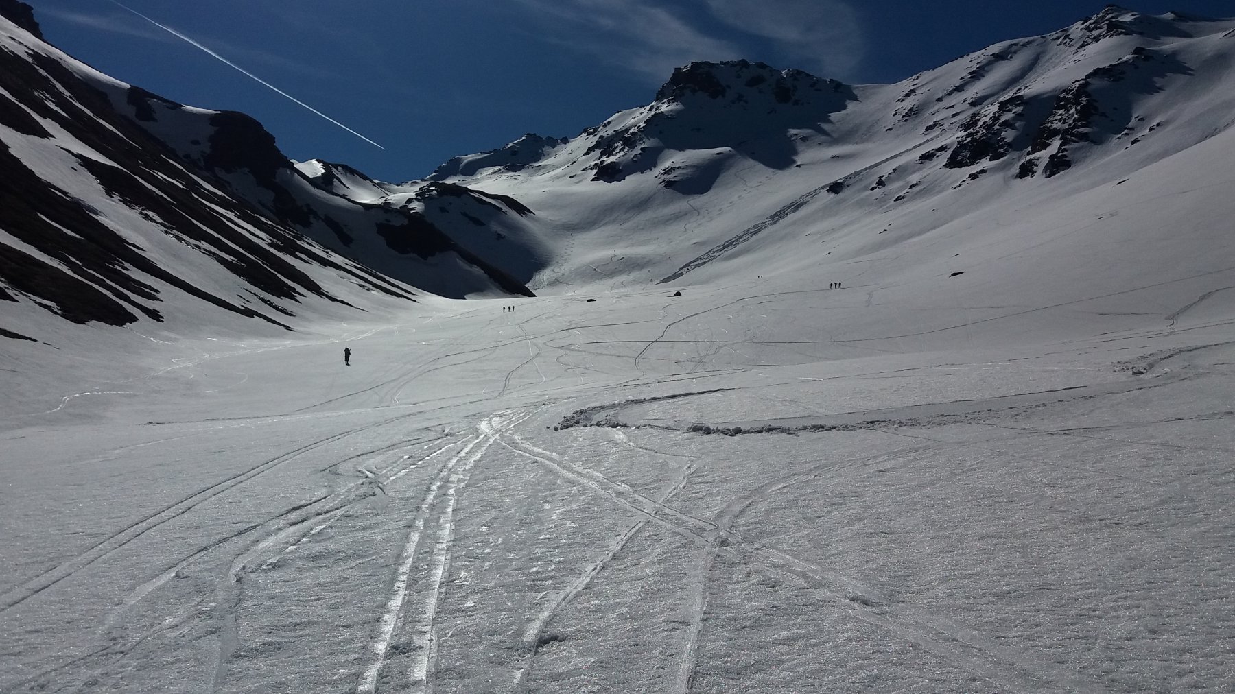 | enrico | Tracce sul ghiacciaio nella luce del pomeriggio | enrico | Franco e Luca al col d'Arnas | enrico | Sguardo all' indietro verso punta Maria | enrico | Condizioni canale d'Arnas (pomeriggio)