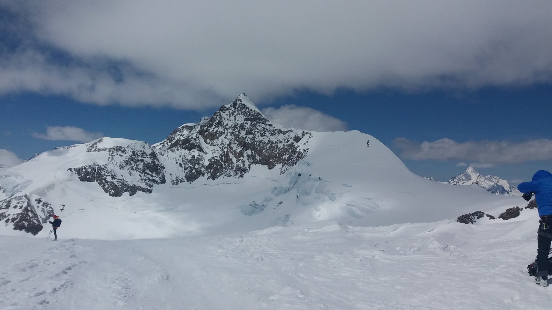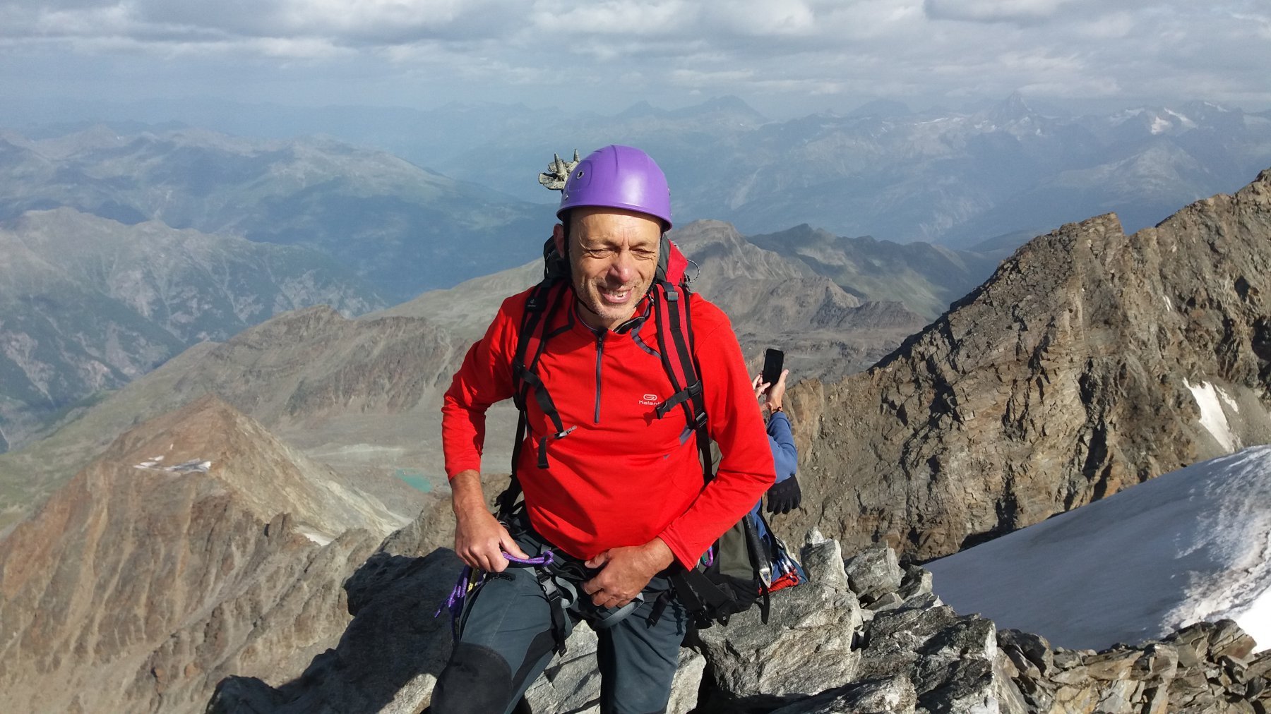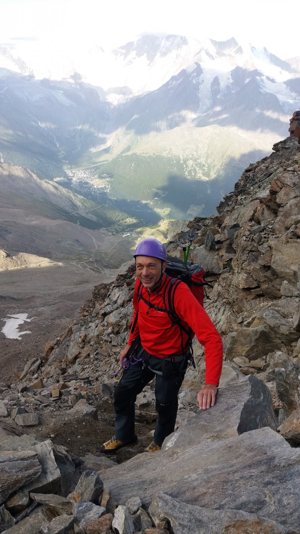 | enrico | Condizioni della montagna (cresta di salita a sx) | enrico | Traverso con cavetto d' acciaio per raggiungere il ghiacciaio | enrico | Tipico terreno in salita | enrico | Davide in vetta | enrico | E ci sono anch' io | enrico | Versante di salita, Saas Fee in fondo e gruppo Mischabel sullo sfondo