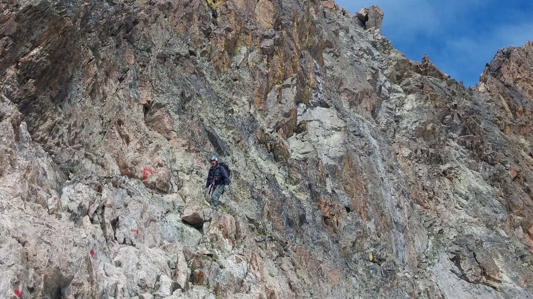 | enrico | Pendio del passo Giacoletti, Luca in prima posizione | enrico | Paretina iniziale, Max quasi in cima | enrico | Mauro ormai sopra la parte piu' impegnativa | enrico | Chiara e Bruna ormai vicine alla cima | enrico | Dalla cima, vista a volo d' uccello su pian del Re | enrico | Infilata di cime, da punta Roma al Granero | enrico | Croce di vetta