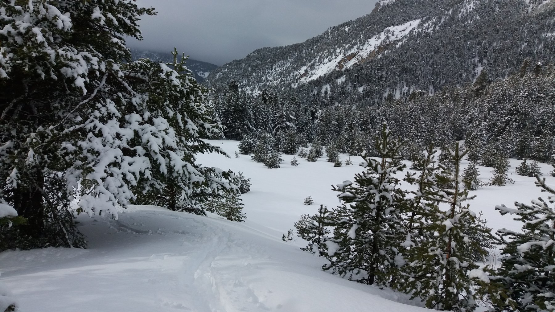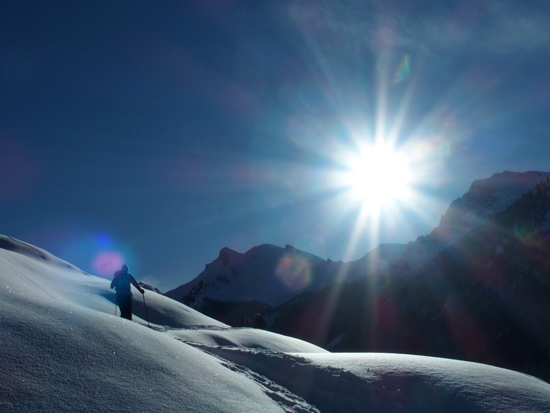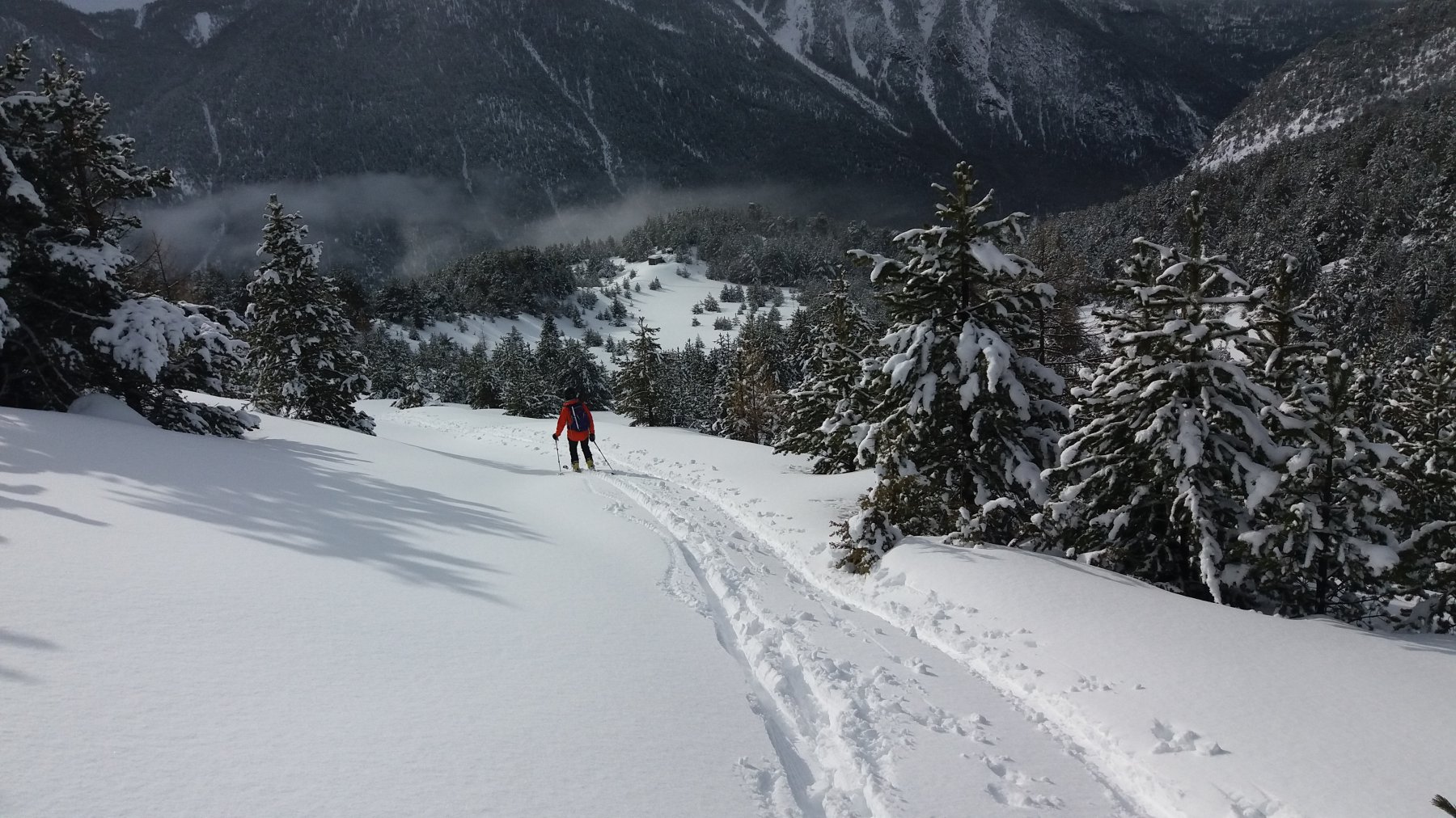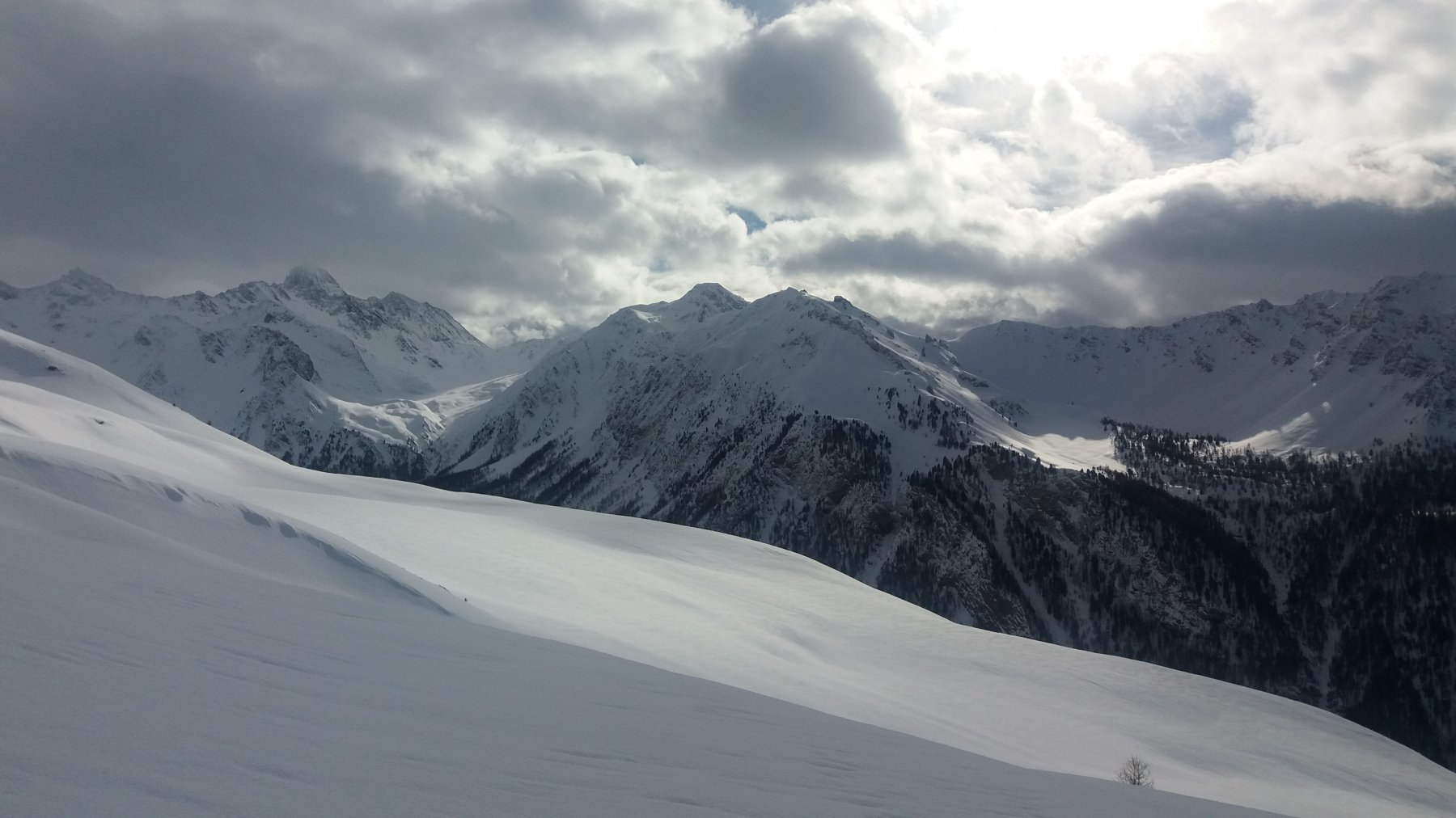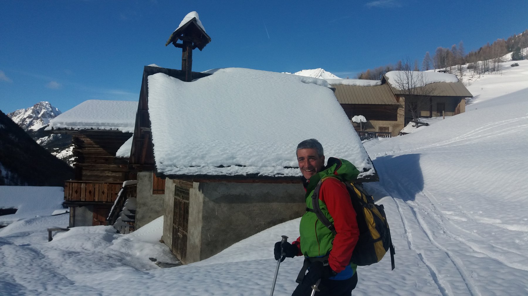 | enrico | Effetto sole-nuvole | enrico | Prima parte della discesa | enrico | Arrivo alle case di Chalmettes | enrico | Al tramonto, vista da Ceillac sui pendii sciati la mattina