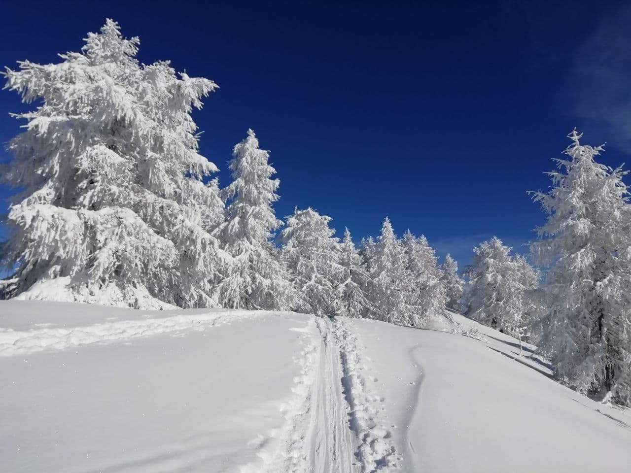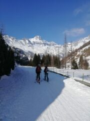 Seguita la stradina , con alcuni brevi tratti (pochi meteri) senza neve. Ci siamo tenuti il piu' possibile sul versante esposto a sud per godere…