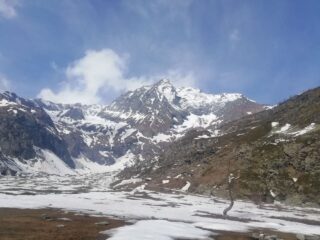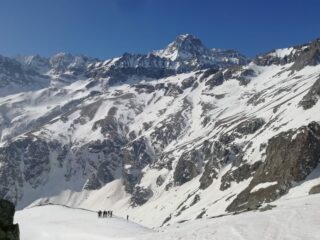 Tornato indietro per stanchezza al traverso in prossimita' del colle del Leone (3550 m circa). Salita lunga e in buone condizioni, nel primo canale con…