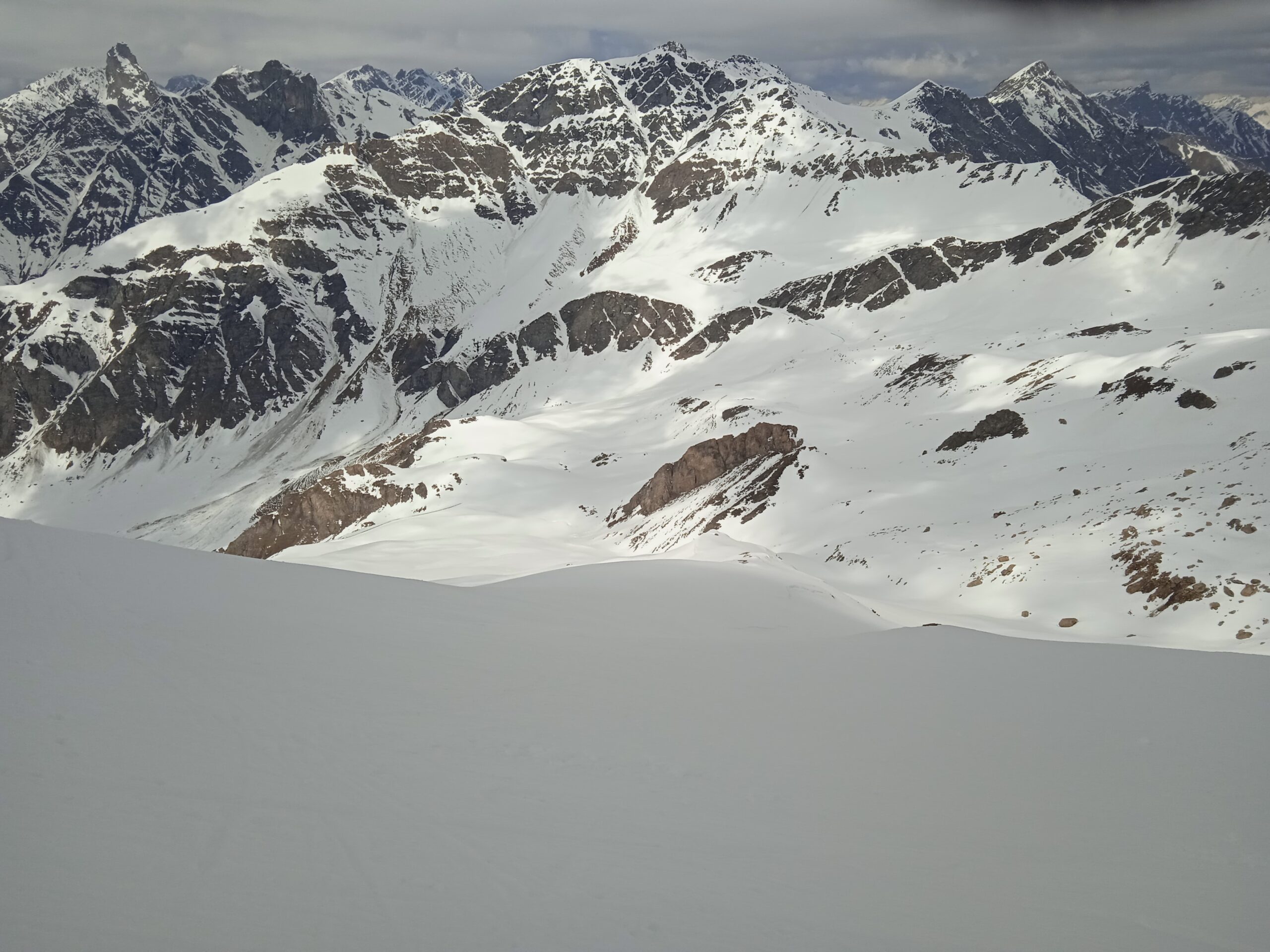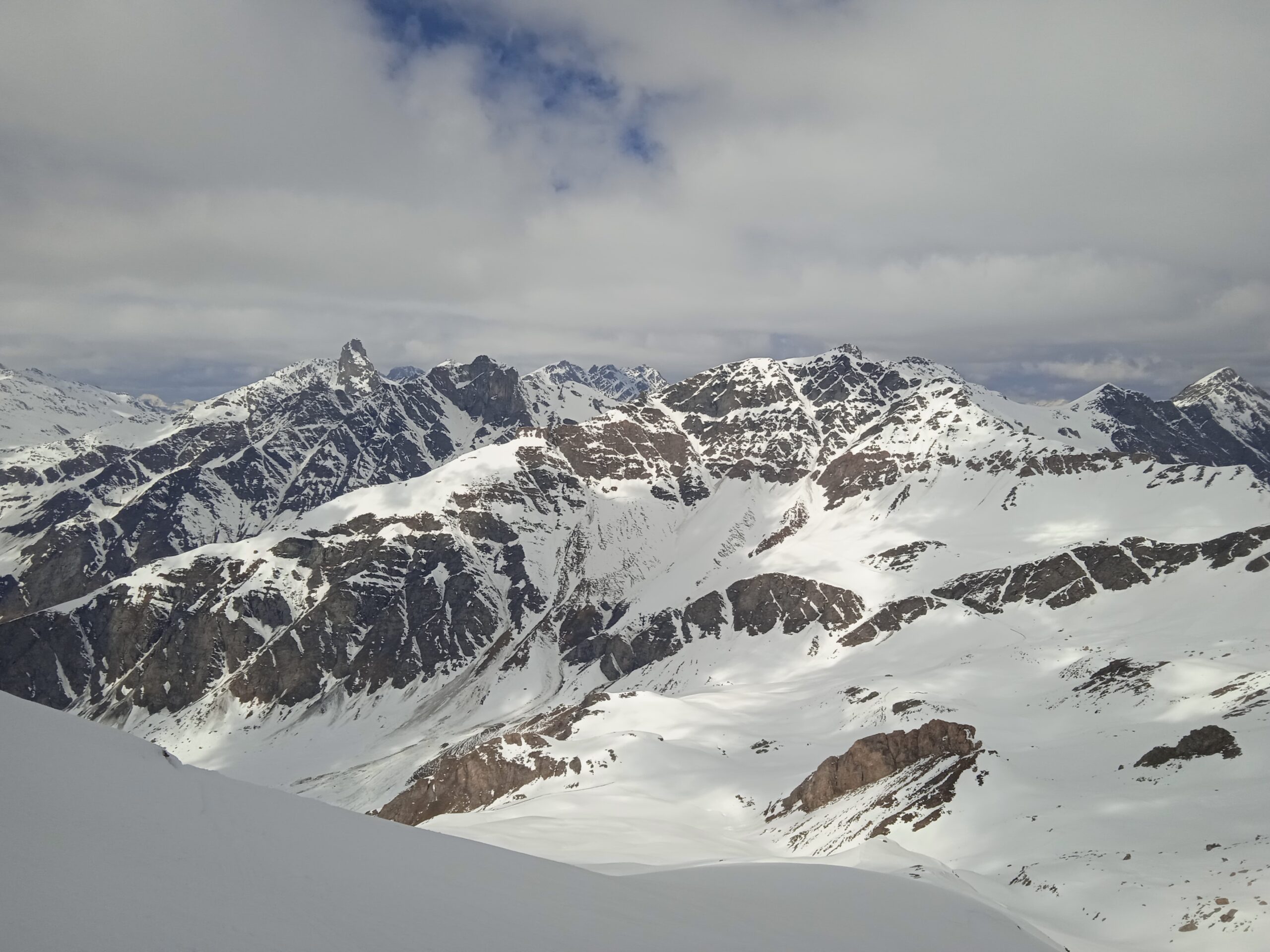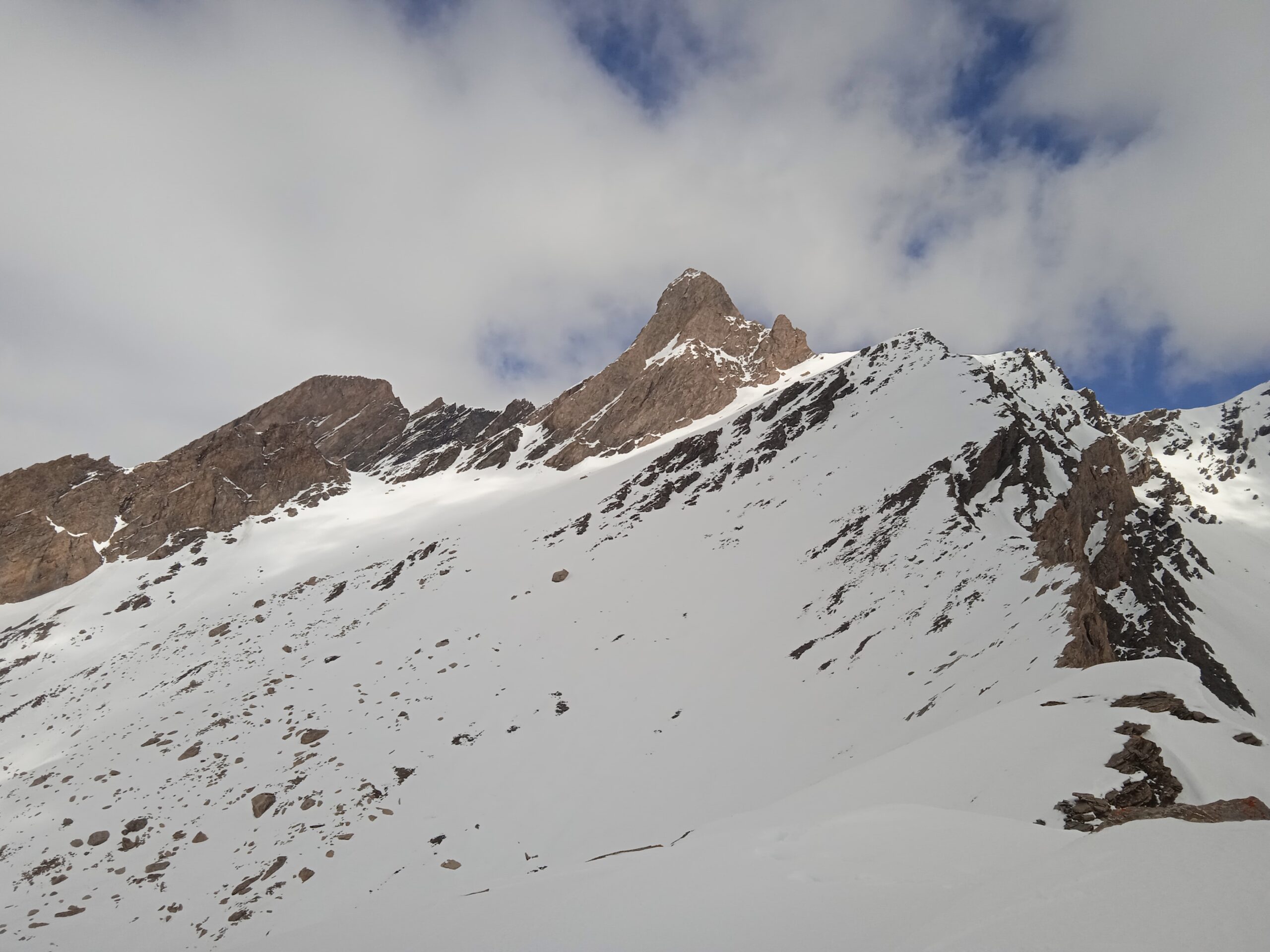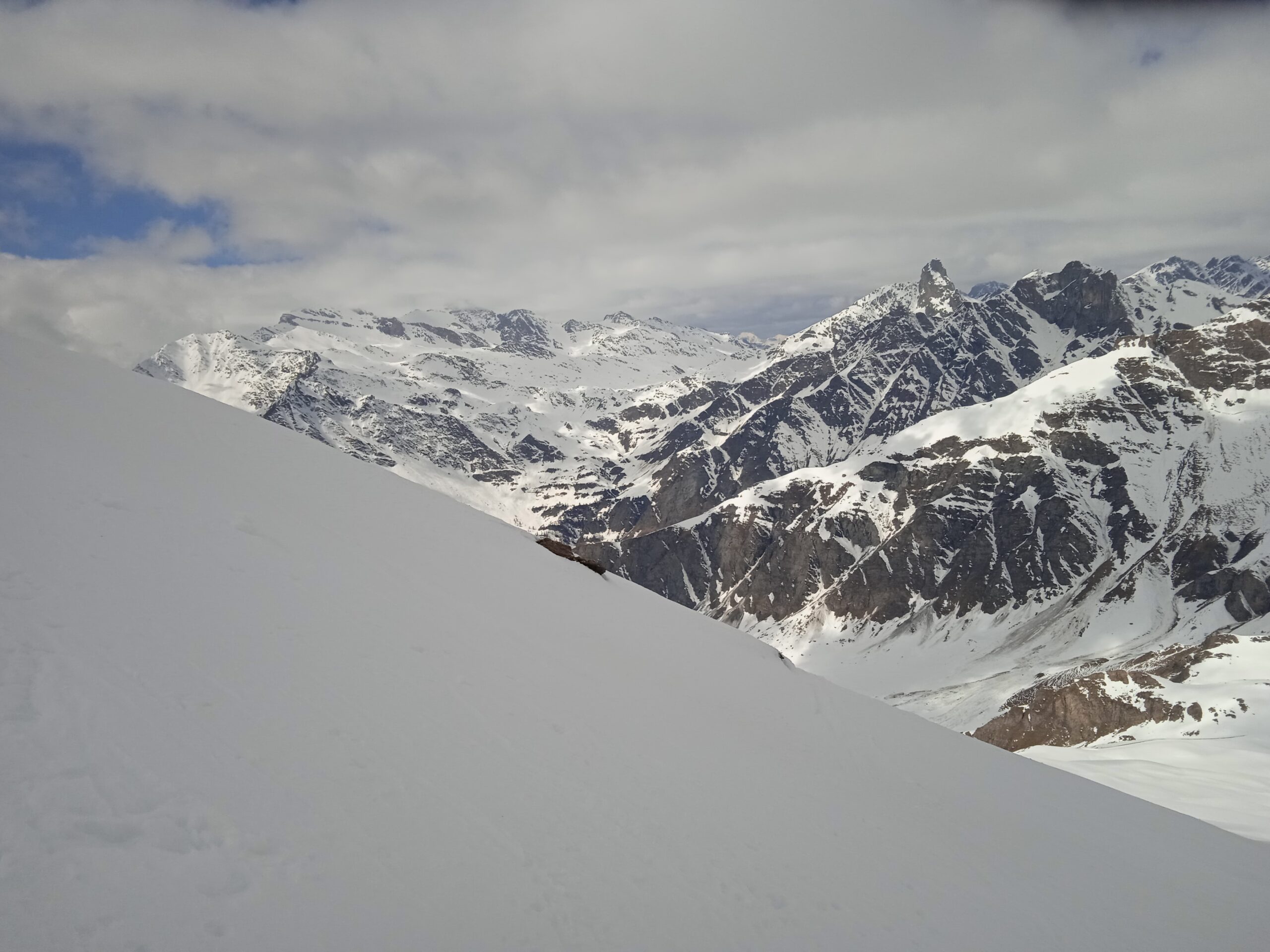 Neve continua da pian Mait in su .. neve crostosa poco portante .. ramponi utili ma non indispensabili per uscita passo Luisas.