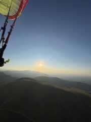 Volato nel tardo pomeriggio, decollo molto ampio e comodo poco sotto la vetta. In volo per trovare un po’ di ascendenza abbiamo planato sulla cresta…