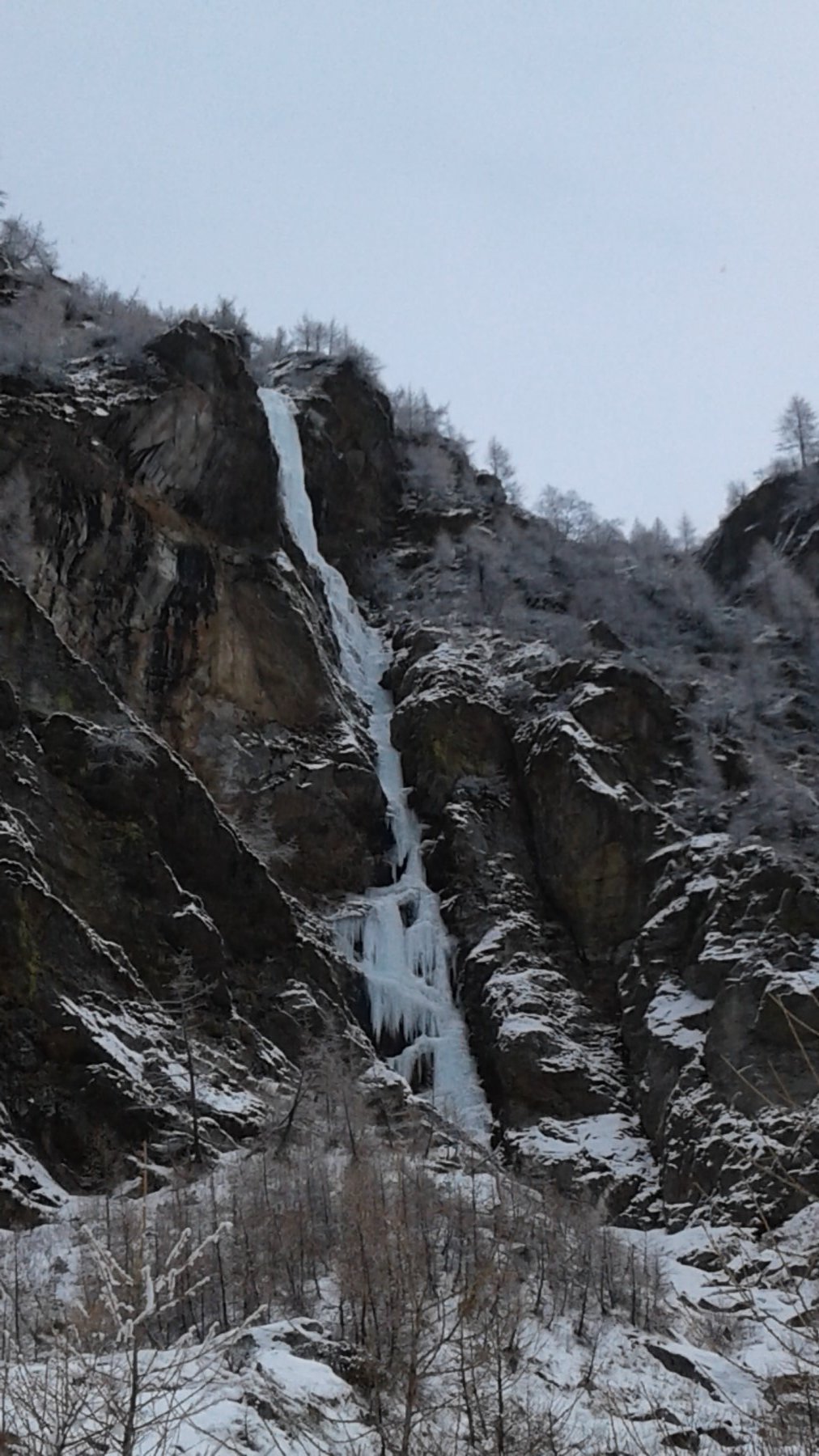 ghiaccio sufficiente,molto bucato con molta acqua che scorre.a tratti vetroso e spaccoso,alle ore 8.30 -10° alle centralina, ore 13.30 -2°. in valle con questo freddo…