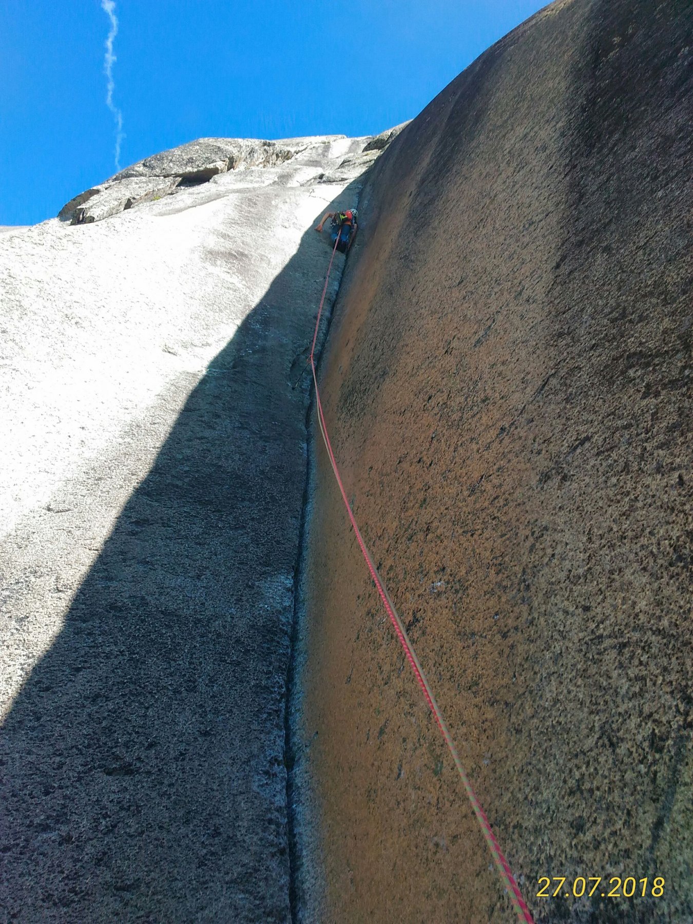 Roccia asciutta, temperatura gradevole si stava bene in maglietta, roccia bellissima, sulla via pochi spit e quelli che erano stati aggiunti son stati rimossi(per fortuna),…