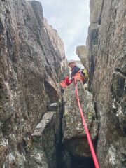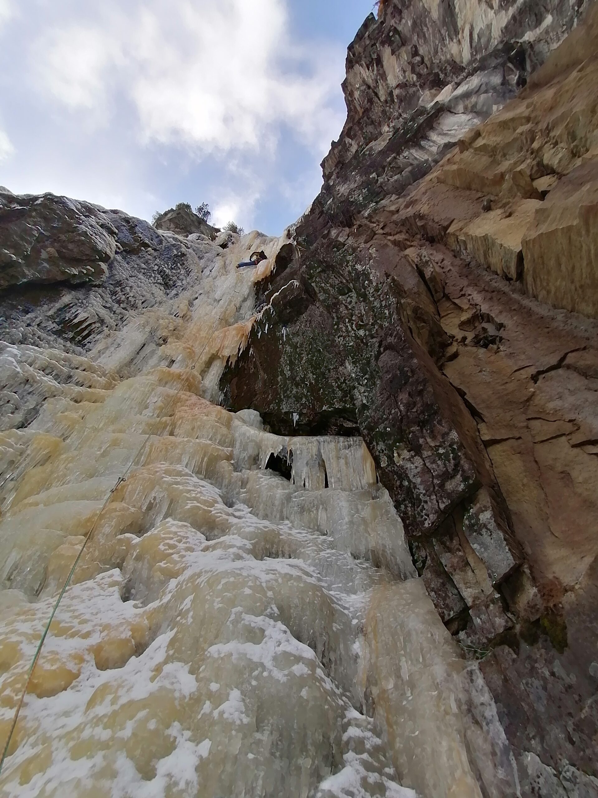Cascata formata abb bene,solo il 2 tiro non fornitissimo con qualche difficoltà a posizionare le protezioni e qualcuna di dubbia qualità…prima sosta ok, la seconda…
