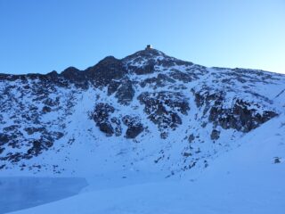 | erminio | In vetta mentre arriva il maltempo... | erminio | Salendo, dietro di noi tutta la salita fino al Santuario | erminio | Foto delle condizioni presa 3 giorni prima, col tracciato dal Canalino in rosso