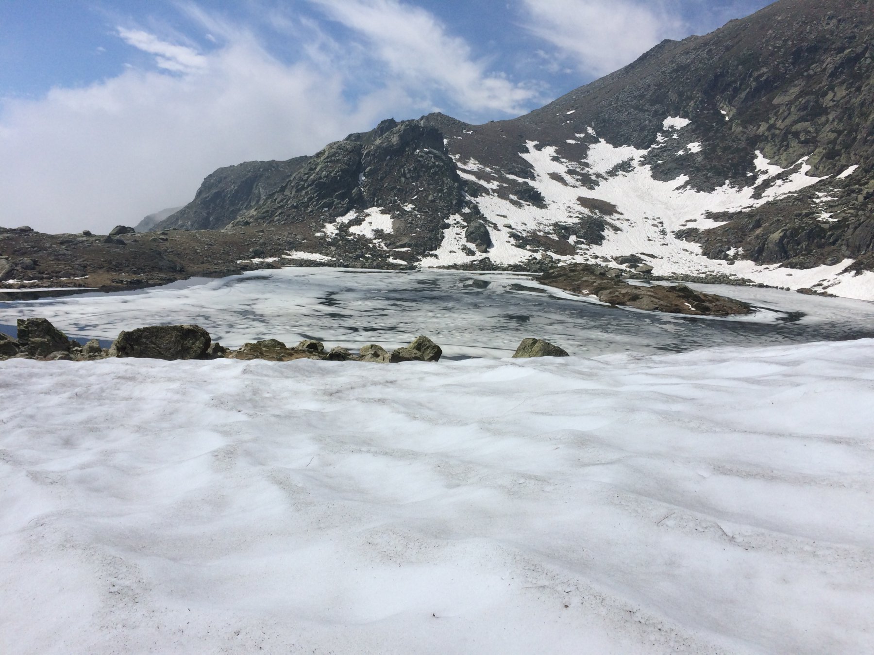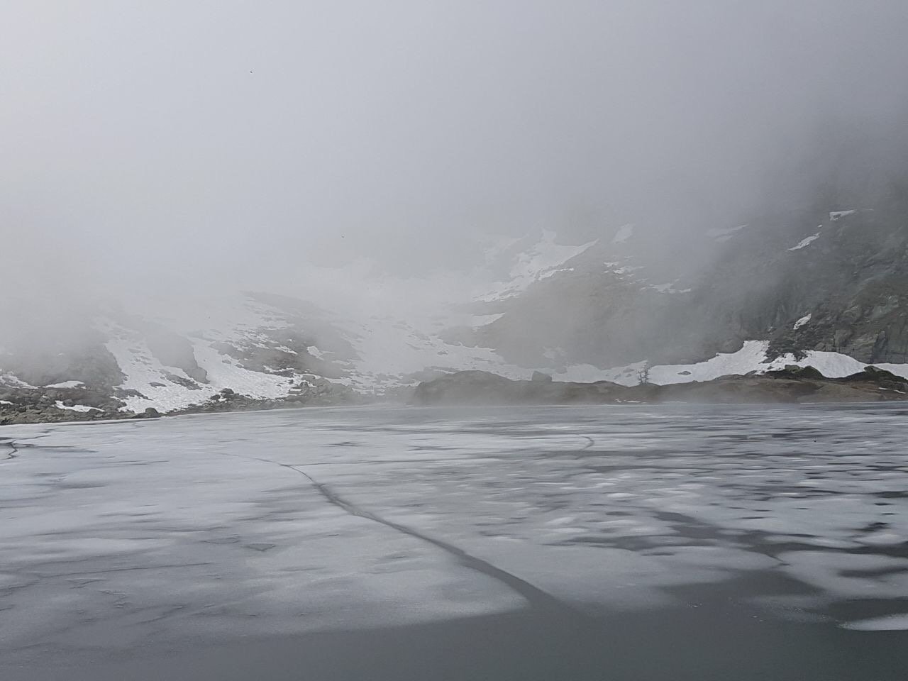 giornata molto afosa che ha reso il cammino faticoso, sul lago ancora una patina di " granita "